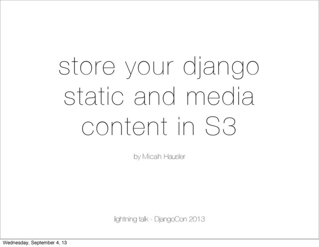 Micah Hausler lightning talk - DjangoCon 2013 Wednesday, September 4, 13