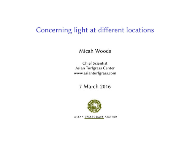 I spoke about photosynthetically active radiation and explained the meaning, and usual values, of photosynthetically active radiation (PAR), photosynthetic photon flux density (PPFD), and daily light integral (DLI). I explained that PAR can be estimated for any location, given latitude and day of the year, for a clear day with no clouds. At the field day on March 8, I further explained how different intensities of cloud cover tend to affect the PPFD. Similar calculations of solar radiation allow one to estimate the evapotranspiration for a site, again given the date and the latitude, and I demonstrated this ET calculator that uses the Hargreaves equation: https://asianturfgrass.shinyapps.io/ET_calculator/.