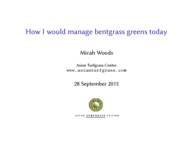 1. How I would manage bentgrass greens today Micah Woods Asian