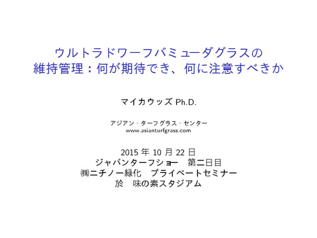 Presentation slides in Japanese for this talk given on 22 October 2015 at the Japan Turf Show in Tokyo.