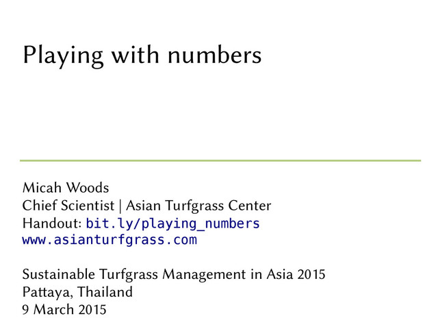 This presentation was given as part of the Sustainable Turfgrass Management in Asia 2015 conference at Pattaya, Thailand. The topic? Objective assessment of putting green surfaces.