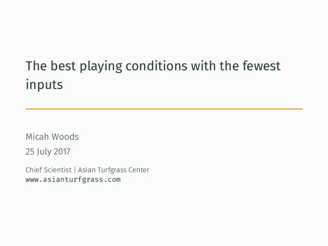 This presentation, at the Thailand Golf Paradise Seminar in Khao Yai, is a discussion of what type of playing conditions we try to produce on golf course turf. Then for the specific conditions of Thailand, in very plain terms, I explain how those conditions are produced with the fewest inputs of water, pesticides, mowing, fertilizer, etc.