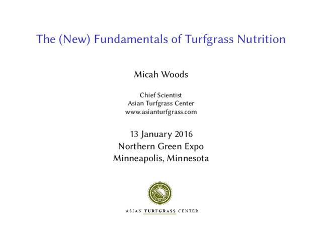 Most seminars, presentations, articles, and even semester-long courses about turfgrass nutrition discuss the functions of different elements. Potassium is involved in stomatal regulation, phosphorus is essential for root development, calcium for cell wall strength, and so on. All true, but largely irrelevant for the turfgrass manager. What the turfgrass manager must know is not the function of each element, but the quantities -- is enough of this element present to meet the grass requirements, or is it not? If it isn't present in adequate quantities, how much must be added to ensure the grass has enough? In this seminar, the fundamentals of turfgrass nutrition will be explained, with a focus on an understanding of the amount of each nutrient that is required.