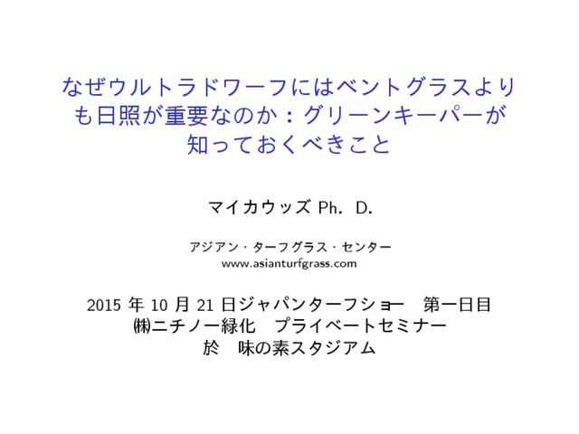 Slides in Japanese for a presentation about photosynthetically active radiation at the Japan Turf Show on 21 October, 2015.