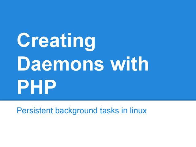 “... implements the Unix style of process creation, program execution, signal handling and process termination.” • http://sg2.php.net/pcntl • Example: http://sg2.php.net/manual/en/pcntl. example.php