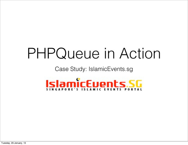 PHPQueue in Action Case Study: IslamicEvents.sg Tuesday, 29 January, 13