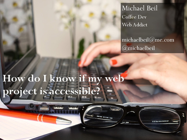 available for the senses: sight, sound, or touch. The most practical way to achieve this is to provide text alternatives for any non-text content. Operable – Make interface elements operable (forms, control, navigation). The biggies here are making keyboard navigation available and giving users time to read or click through content (i.e. imagine a slider that rotates images faster than a user can process or click). Understandable – Make sure content and user interface are understandable. Now this is User Interface 101, accessibility or not. If somebody’s having to guess about where to click, then the design is a failure. Stick to layouts and interfaces that are predictable – if you get too clever with a design, people won’t intuitively know how to use it. Designers, don’t hate on this one. Accessible does not have to equal boring or ugly. Robust – Content can be used reliably by a variety of user agents, including assistive technologies. The bottom line here? Always strive to conform with current web coding standards. See: http://www.carriedils.com/how-to-check-website-accessibility/