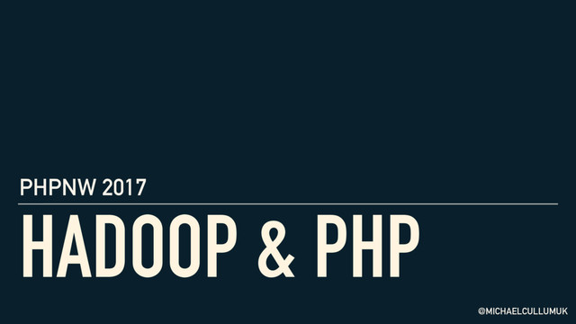 and distributed under the hood ▸ ✓ Hive: Using Hadoop as an RDBMS; importing files ▸ ✓ Presto: A Facebook library we can use to query the cluster ▸ Phresto: A library to make Presto accessible from PHP userland ▸ Phresto & Doctrine CONTENTS