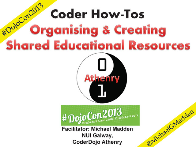 These are afternotes from the working session at #DojoCon2013 entitled "Coder How-Tos: organising and creating shared educational resources", facilitated by Michael Madden. While I had a preliminary draft at the working session, I have updated them to include ideas that arose during the session.