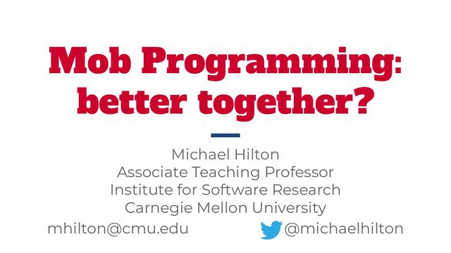 way to bring benefits of Mob Programming into the classroom Observations: - The structure of Mob Programming was helpful - Reflection was more helpful for learning than just discussion https://repository.isls.org/bitstream/1/4532/1/855-856.pdf Takeaway: Retrospectives offer improvement AND Learning for the team