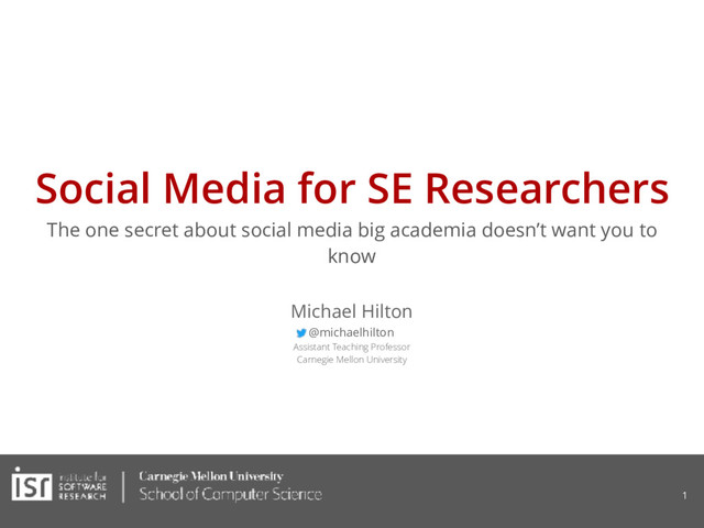 In this talk, I argue that SE researchers should use social media, specifically Twitter to spread ideas, keep a pulse on emerging ideas, and be a part of a community. I also give specific advice to optimize your twitter usage.