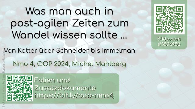 Schließlich ist das, was wir häufig vereinfacht als "agiles Manifest" bezeichnen, im vollen Titel ein "Manifest für agile Software-Entwicklung", und die deutlich älteren Modelle und Forschungen haben da ein sehr viel breiteres Fundament, das wir direkt nutzen können, um Wandel zu gestalten.
