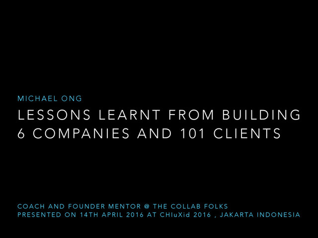 Michael applies all the lessons learnt along the way to help shape The Collab Folks which was founded to coach and mentor startups and growing SMEs across Product Management, User Experience and Agility.