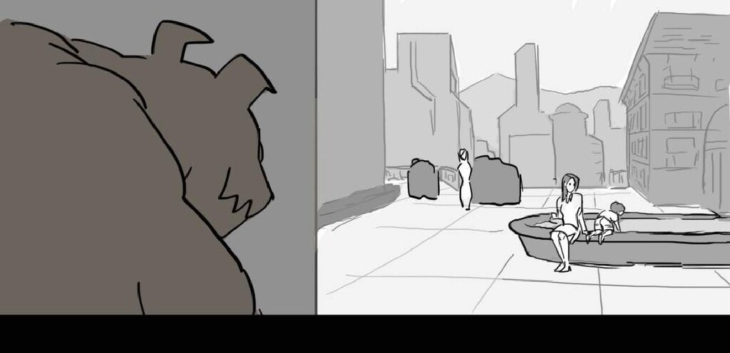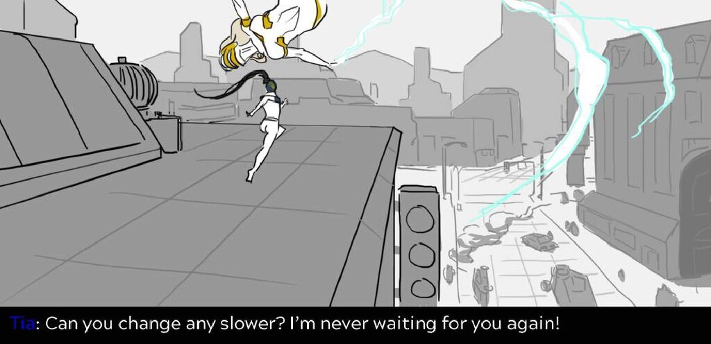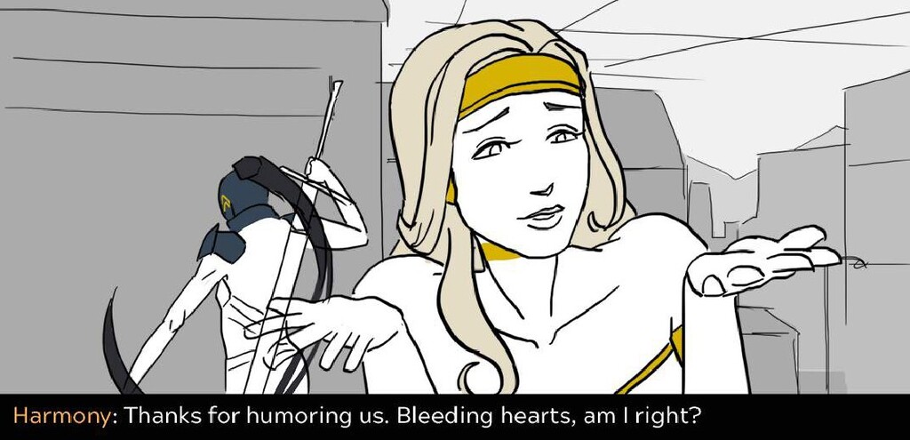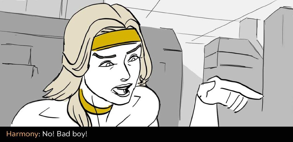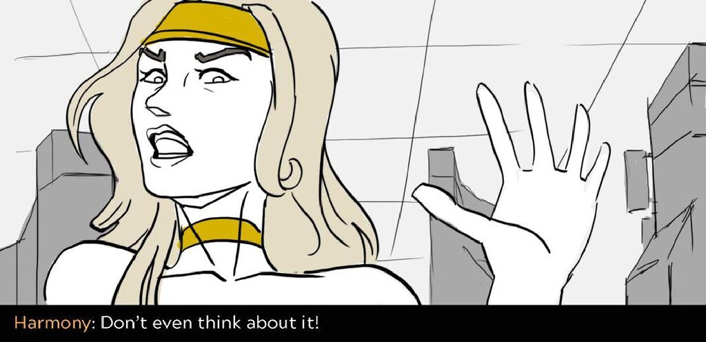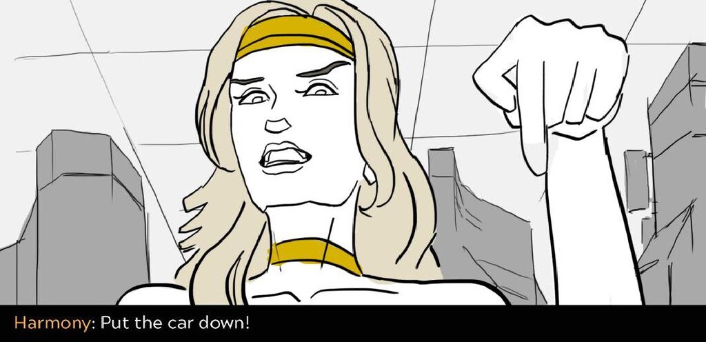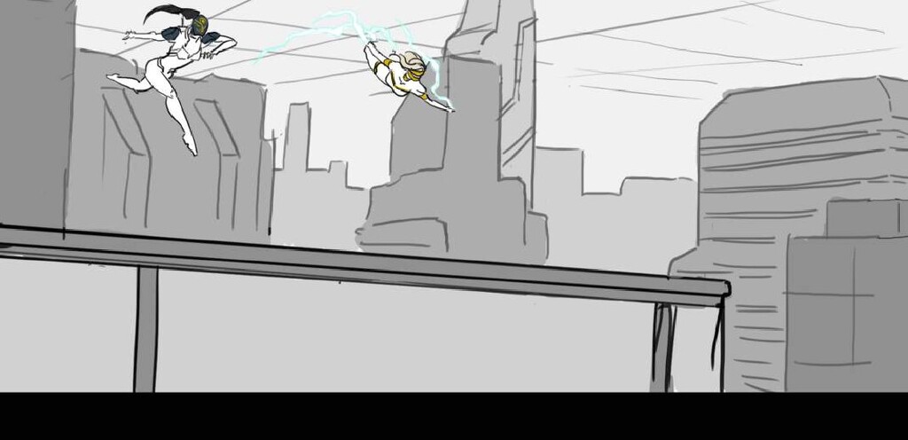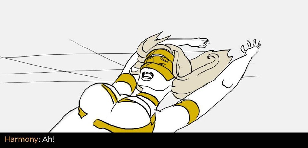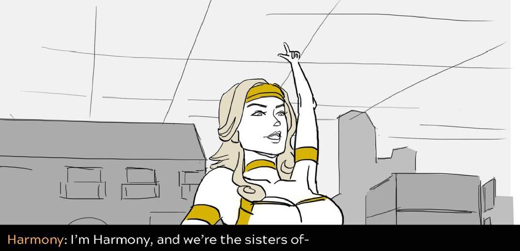 In this sequence I wanted to emphasize the difference in the action between the sisters. Harmony is aloof and flies in inefficient arcs and curves, while Adrestia is determined, always going in a straight line to her target or standing her ground.