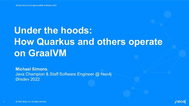 Nearly 3 years since the inception many of us have seen amazing demos: How fast Quarkus based applications start, how helpful dev mode is, we have even learned continuous testing. And when going to production, it even works natively on GraalVM. This talk is the story that starts after a small meeting back in early 2019 in London that led to making the Neo4j driver compatible with GraalVM native over to providing a Quarkus extensions for just the connectivity and eventually ending with full support of Neo4j-ObjectGraphMapping framework in Quarkus. We will talk about the mechanisms Quarkus applies to create a closed world assumption that fulfills the needs of GraalVM native, how extensions need to deal with and the different modules being in a Quarkus extension. This talk will help you understanding why things in Quarkus work the way they do and how you can benefit from them. All of that will be demonstrated with Neo4j and the official Java connectivity to the worlds leading Graph database.