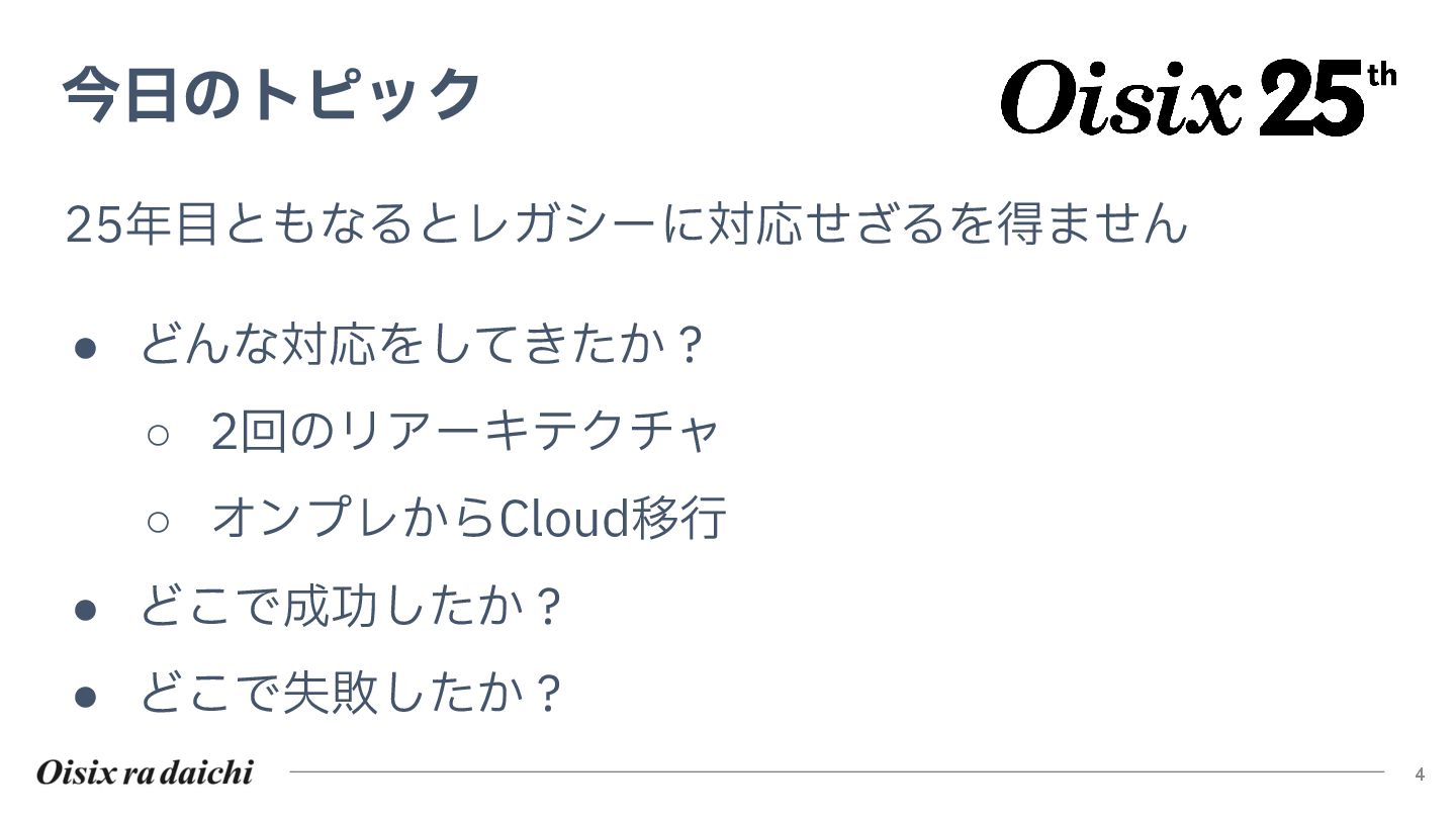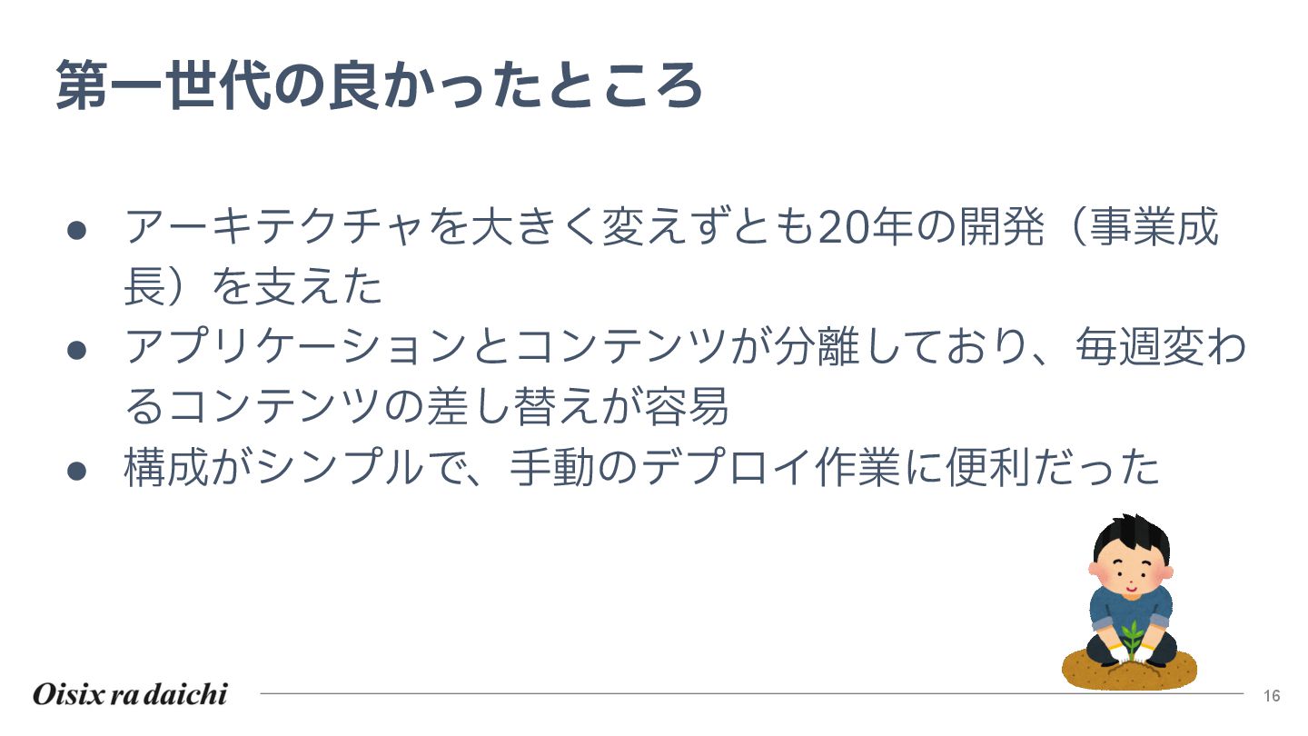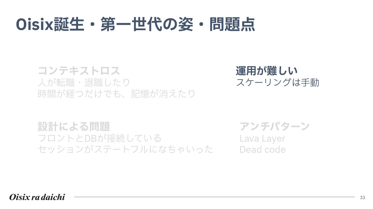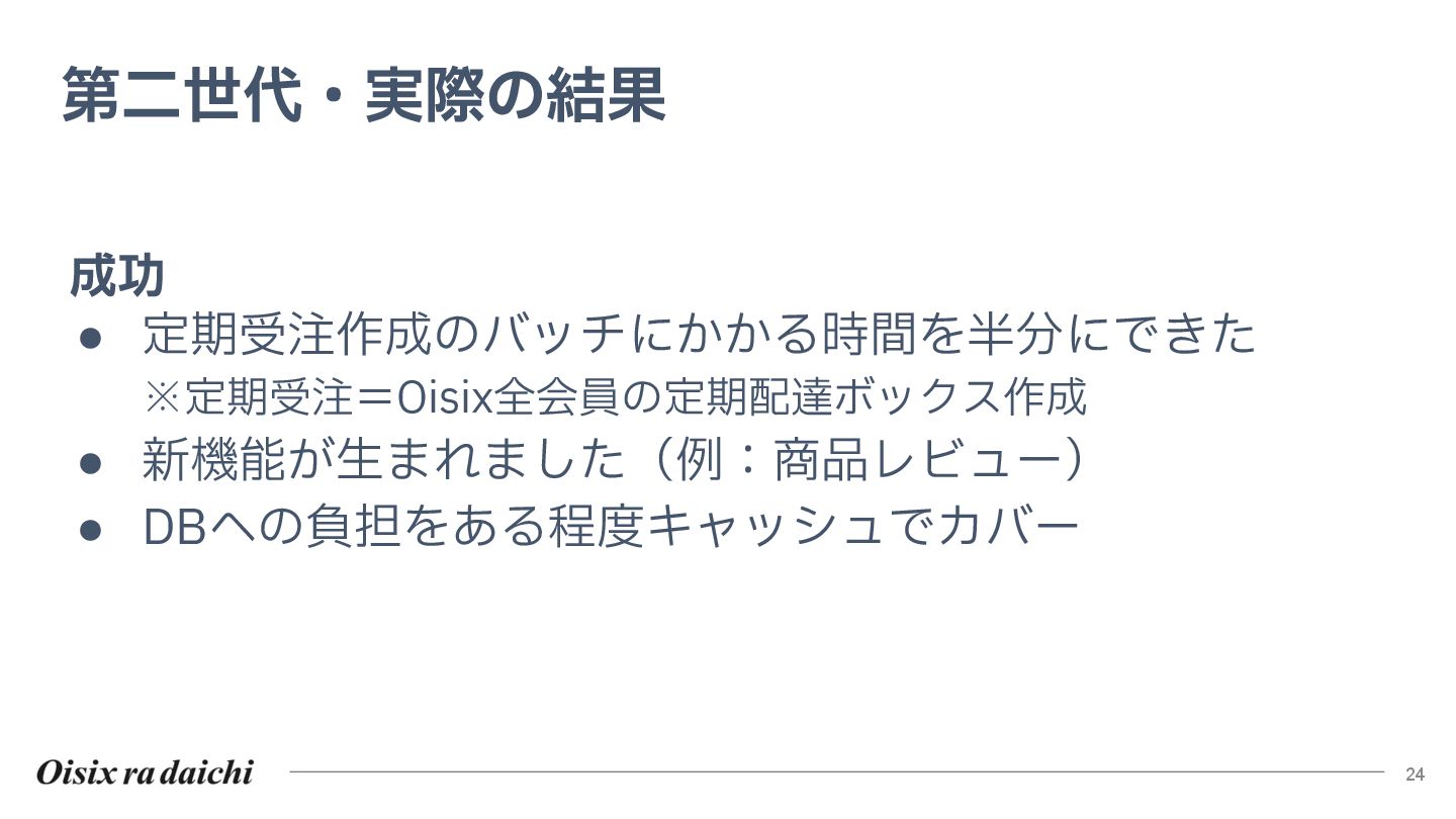 Oisixを25年以上支えたシステムは巨大な技術的負債となりました。2018年開始の第二世代刷新は、守りを重視した結果停滞し、理想と現実のギャップを痛感。この失敗から「負債解消は短期決戦」と学び、アプローチを180度転換しました。