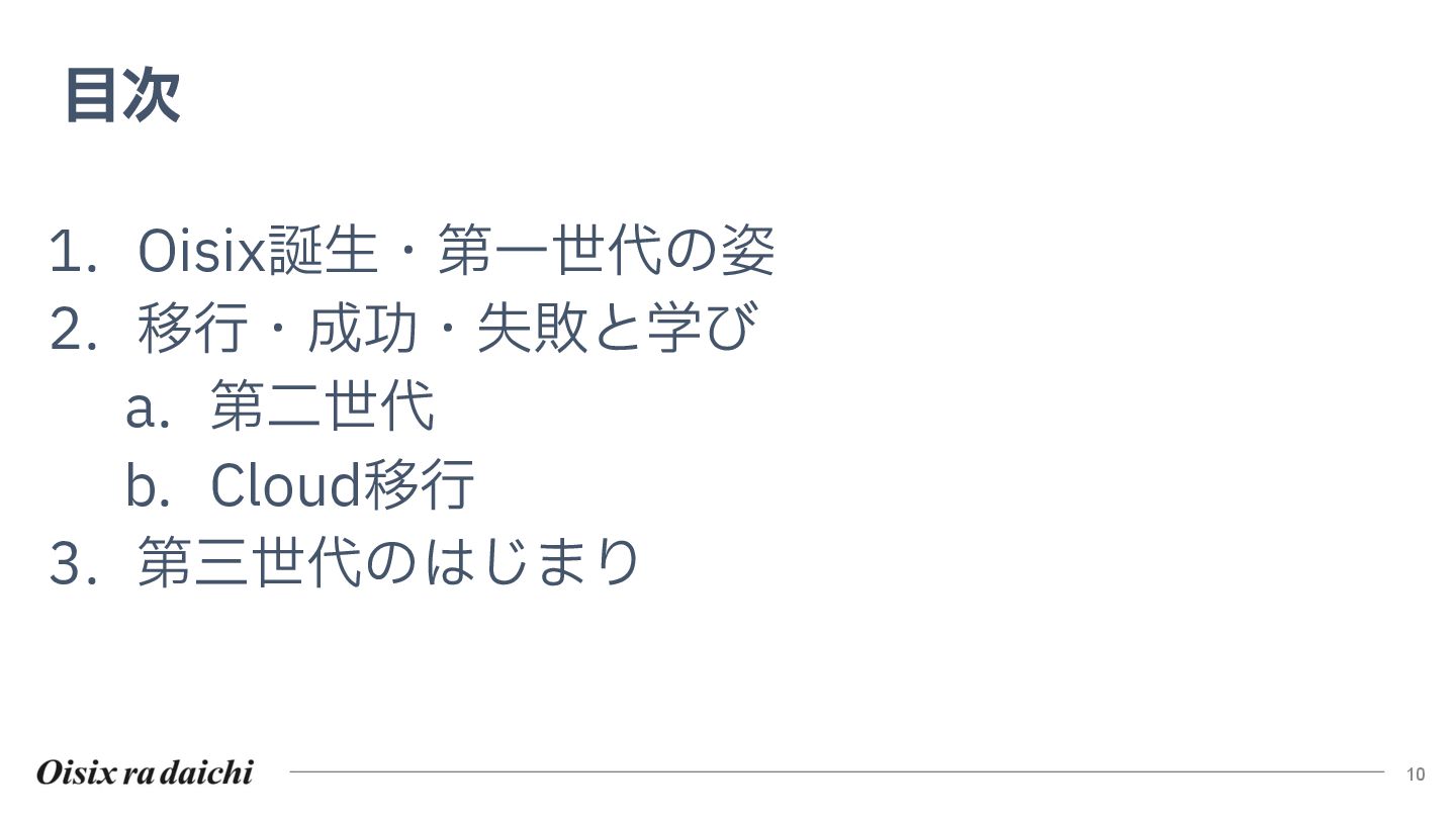 現在は、売上貢献ドメインから攻める第三世代プロジェクトを推進。クラウドネイティブ技術で挑む道は産みの苦しみを伴いますが、LLM活用APIなど未来への光も見えています。ビジネス中心から攻める戦略的判断と、挑戦から得られた学びを共有します。