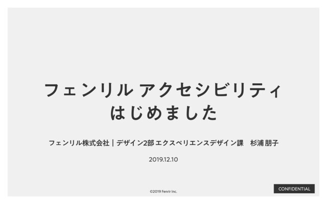 CONFIDENTIAL フェンリル株式会社|デザイン2部 エクスペリエンスデザイン課 杉浦 朋⼦ ©2019 Fenrir Inc. 2019.12.10 フェンリル アクセシビリティ