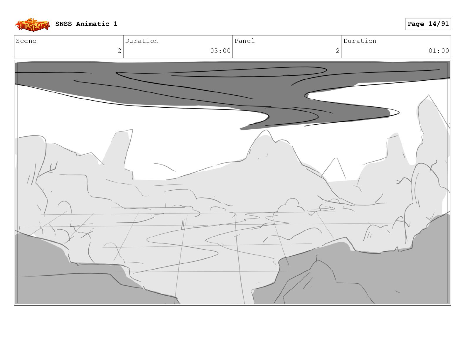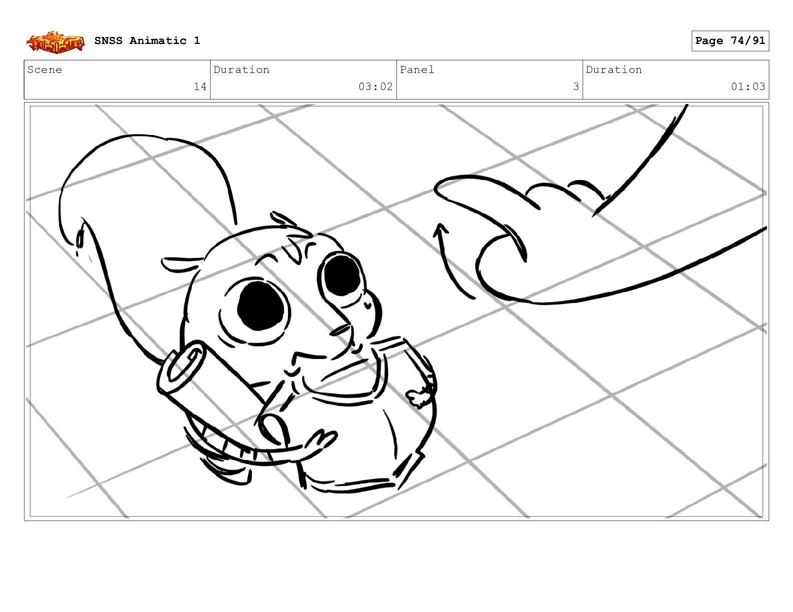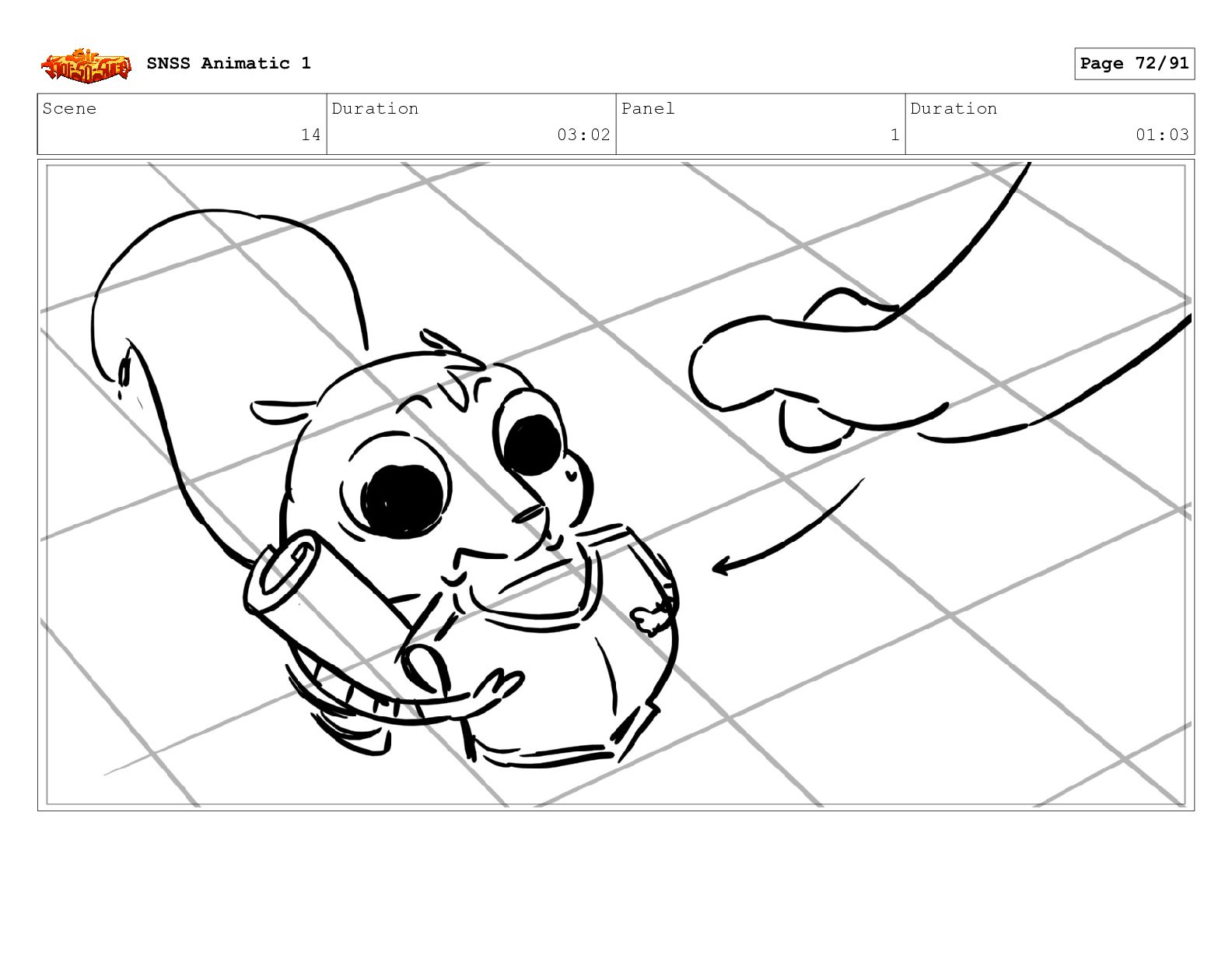 Scene 14 Duration 03:02 Panel 1 Duration 01:03 SNSS Animatic