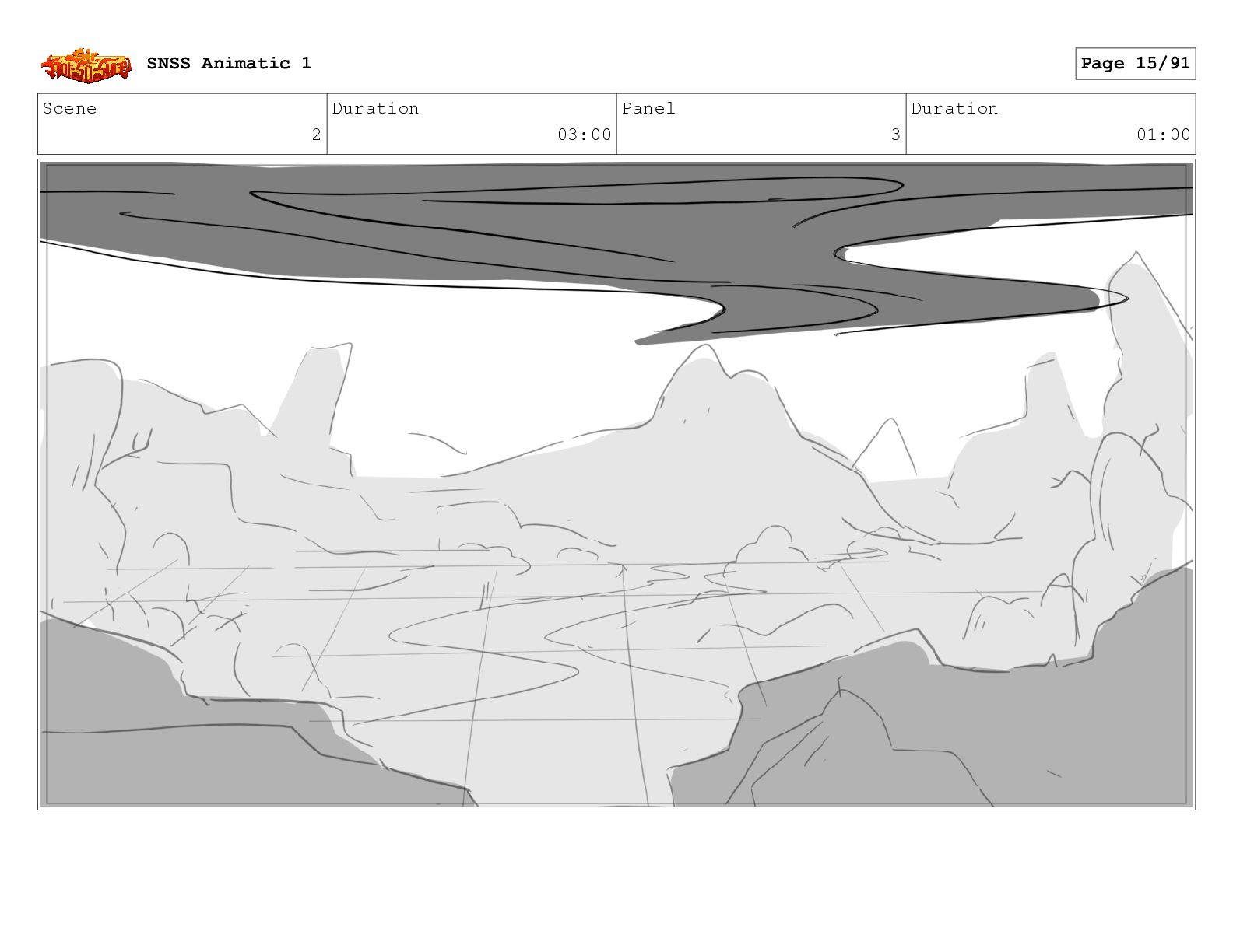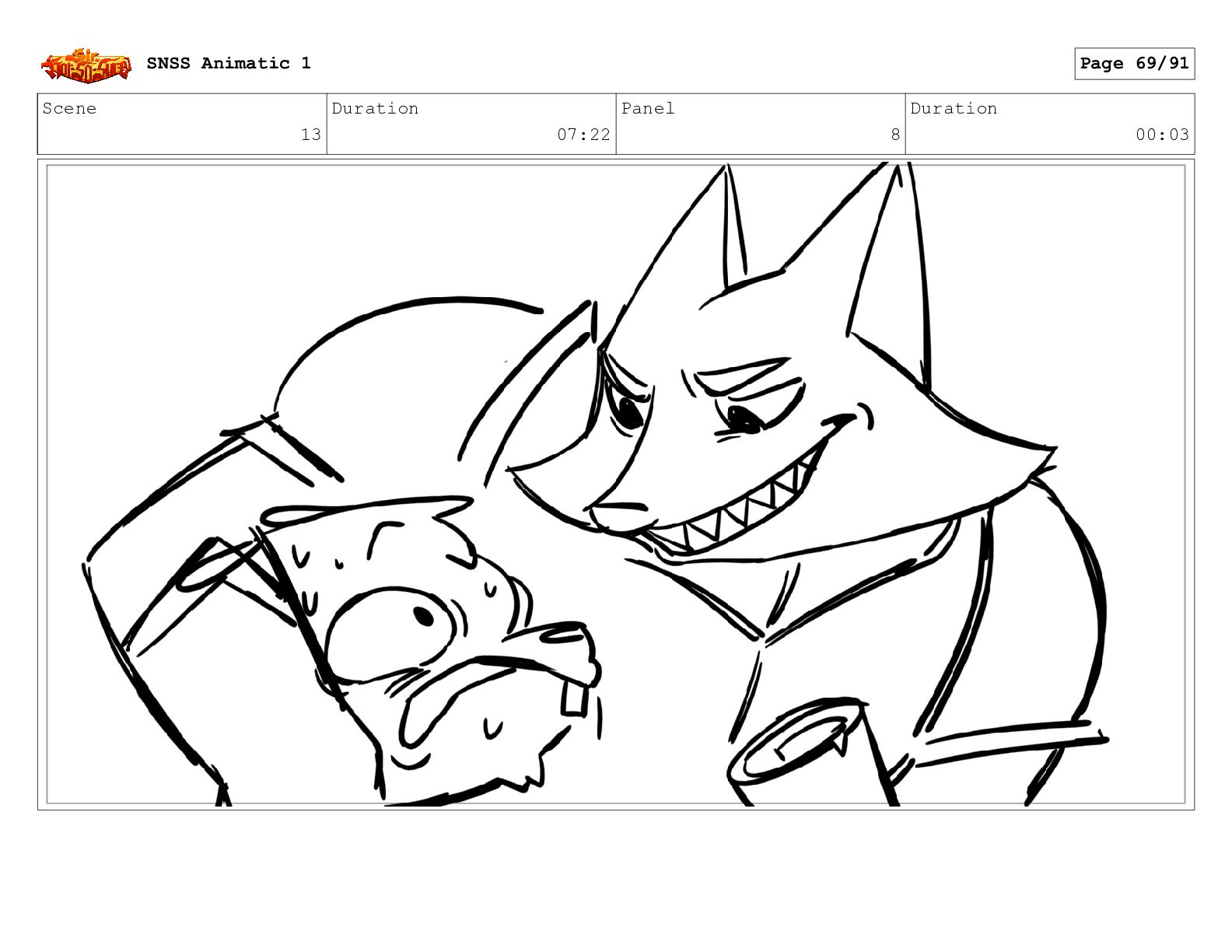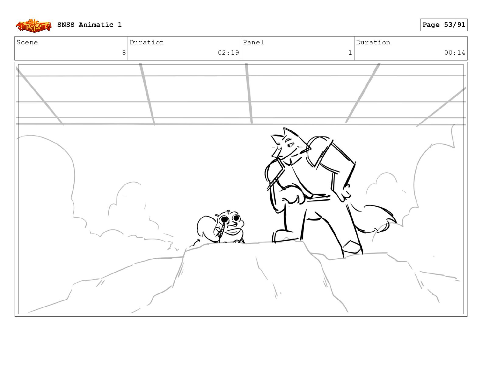 Scene 14 Duration 03:02 Panel 1 Duration 01:03 SNSS Animatic