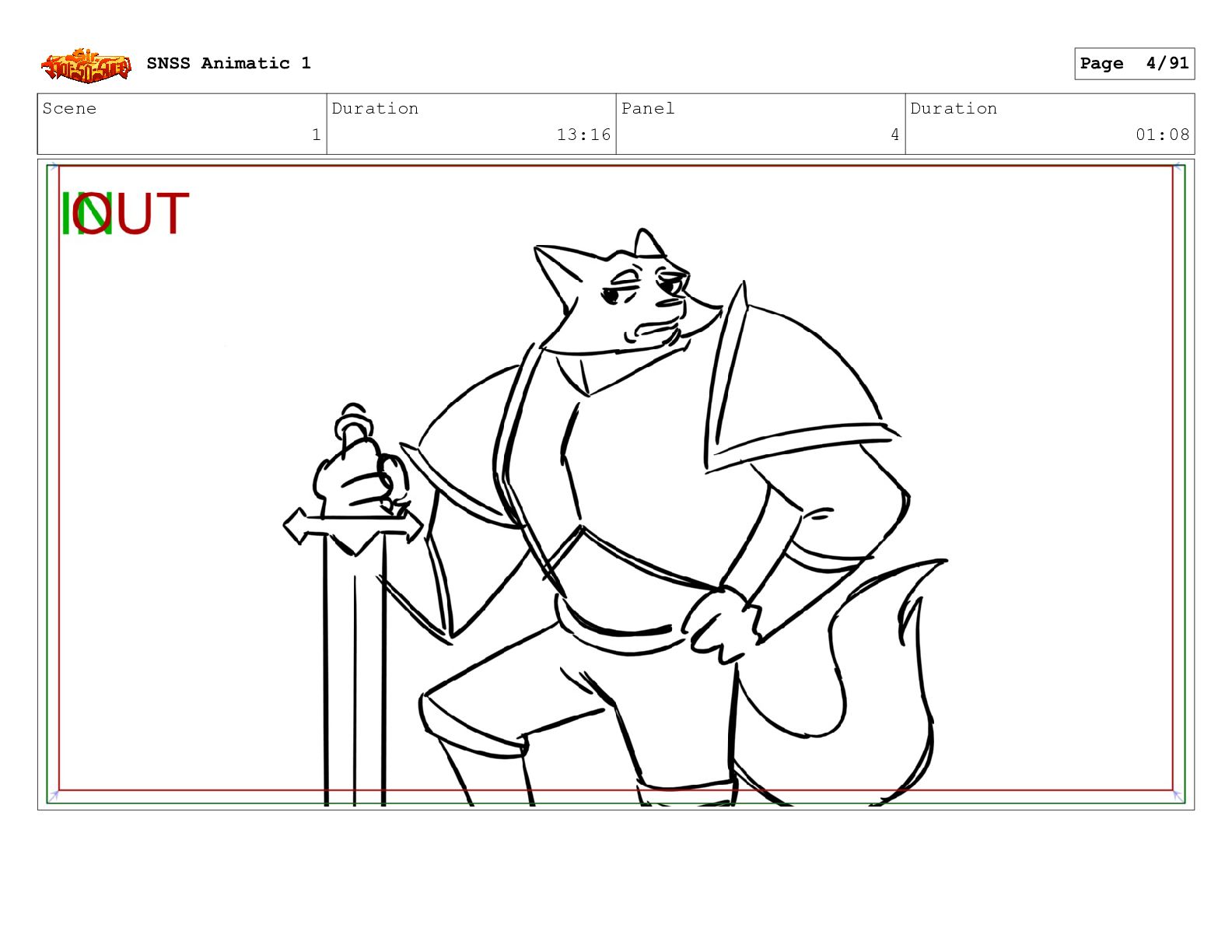 Scene 1 Duration 13:16 Panel 4 Duration 01:08 SNSS Animatic