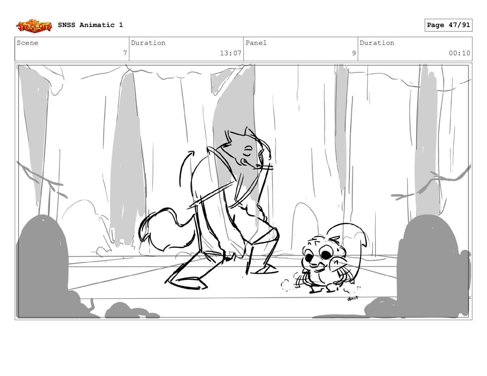 Scene 12 Duration 03:14 Panel 2 Duration 01:07 SNSS Animatic