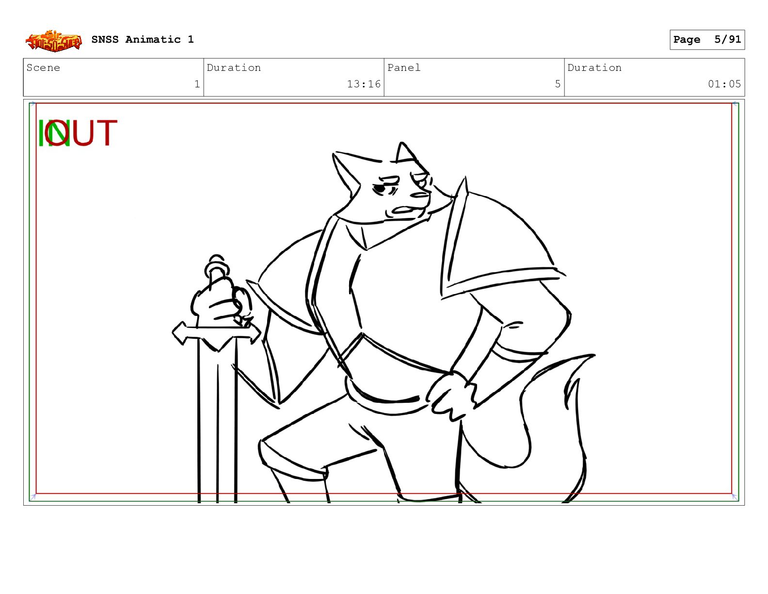 Scene 1 Duration 13:16 Panel 5 Duration 01:05 SNSS Animatic