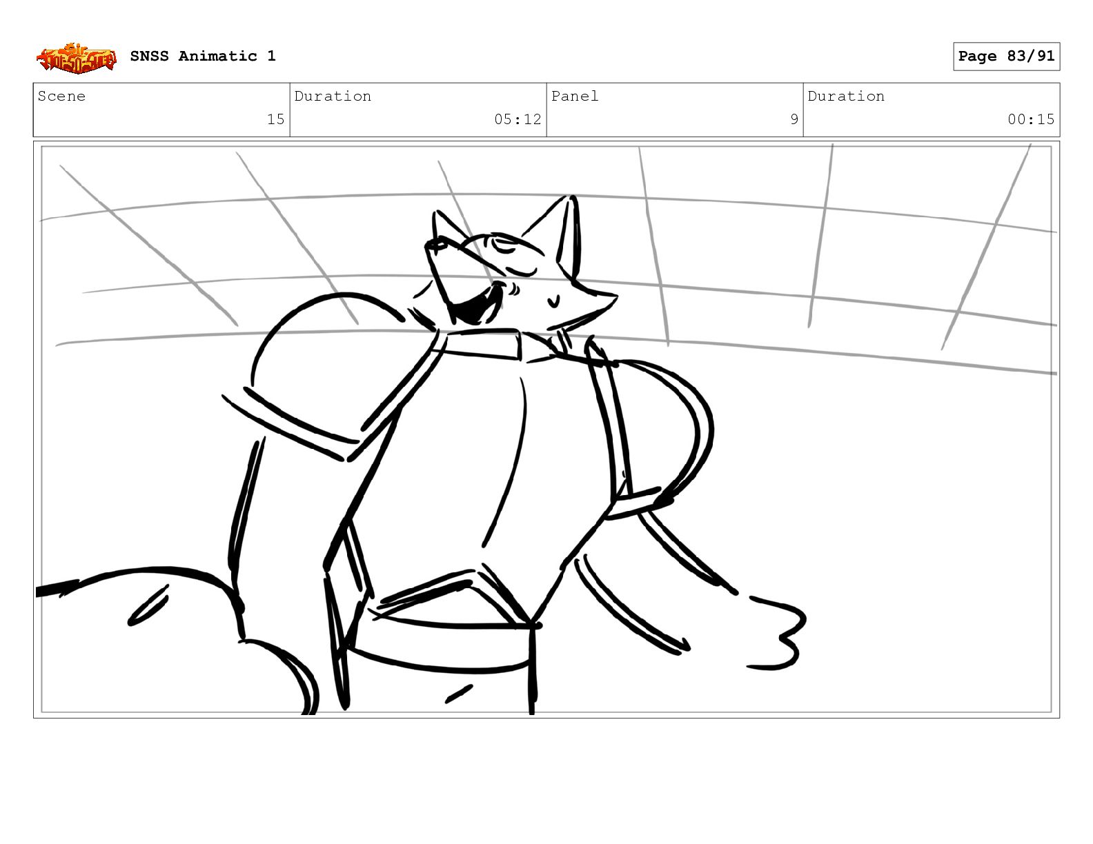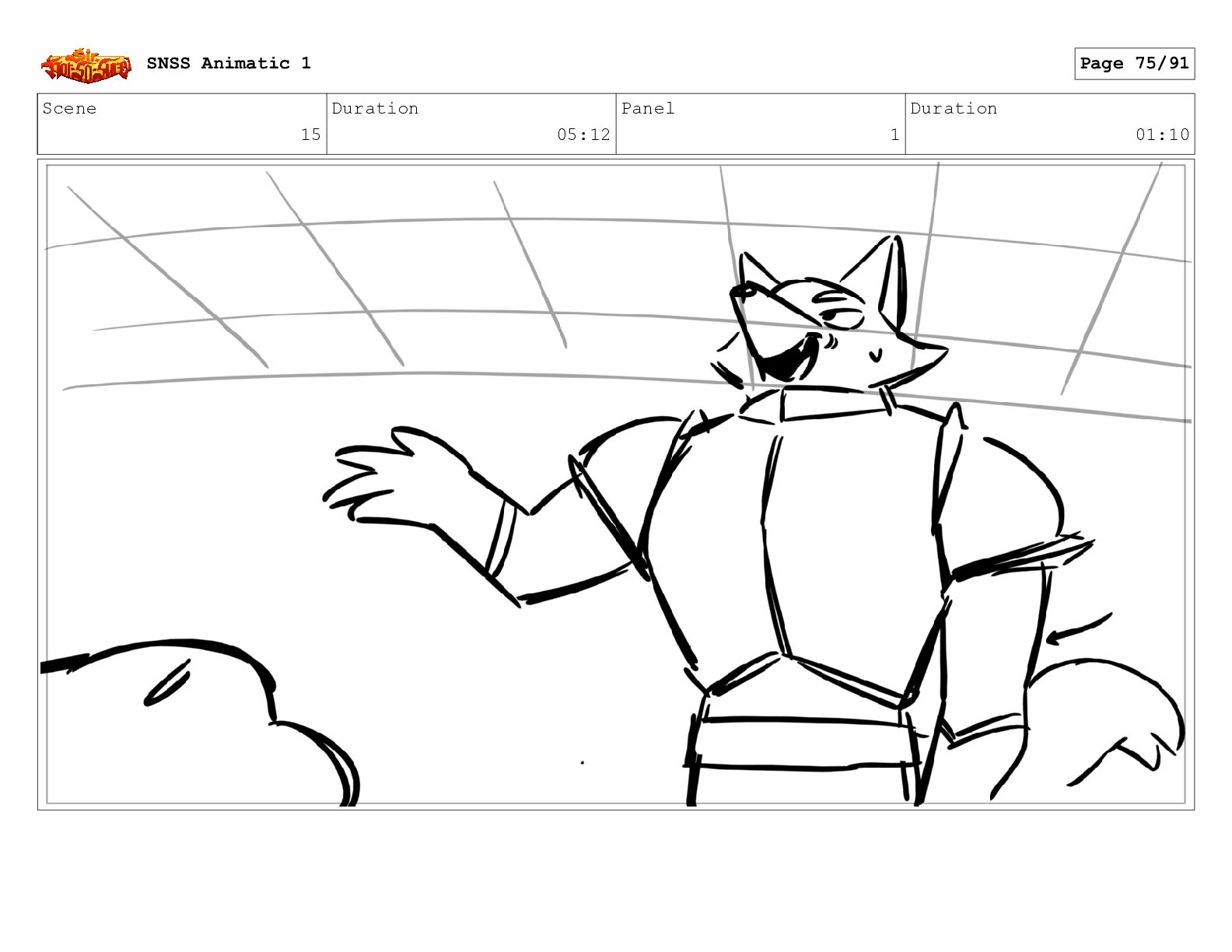 Scene 15 Duration 05:12 Panel 1 Duration 01:10 SNSS Animatic