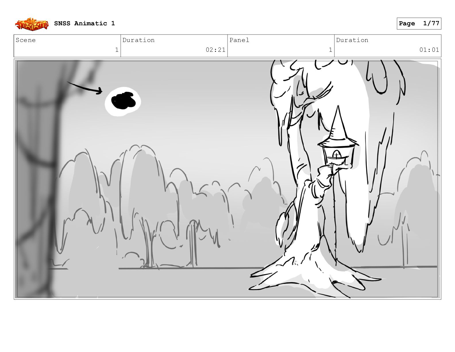 Scene 1 Duration 02:21 Panel 1 Duration 01:01 SNSS Animatic