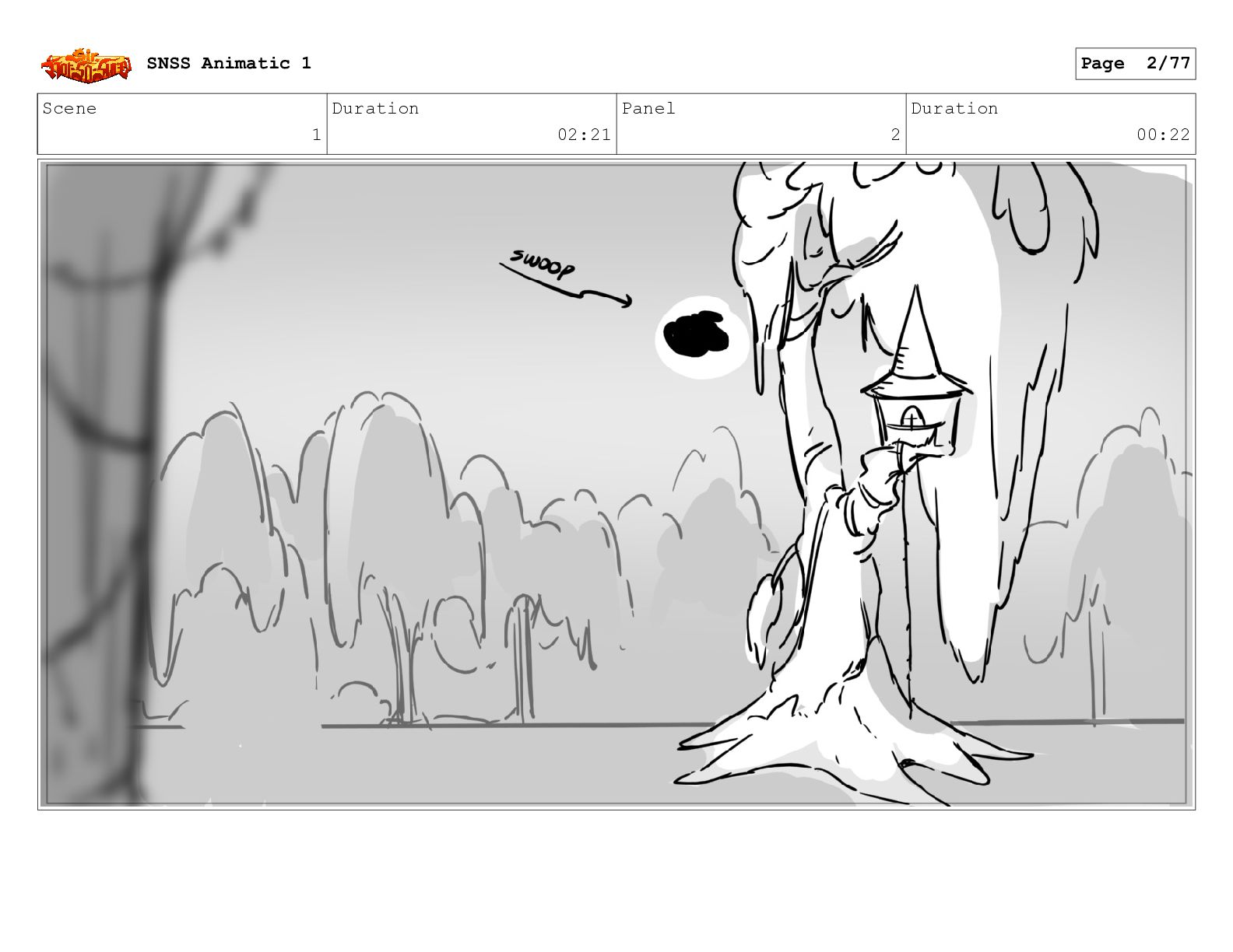 Scene 1 Duration 02:21 Panel 2 Duration 00:22 SNSS Animatic