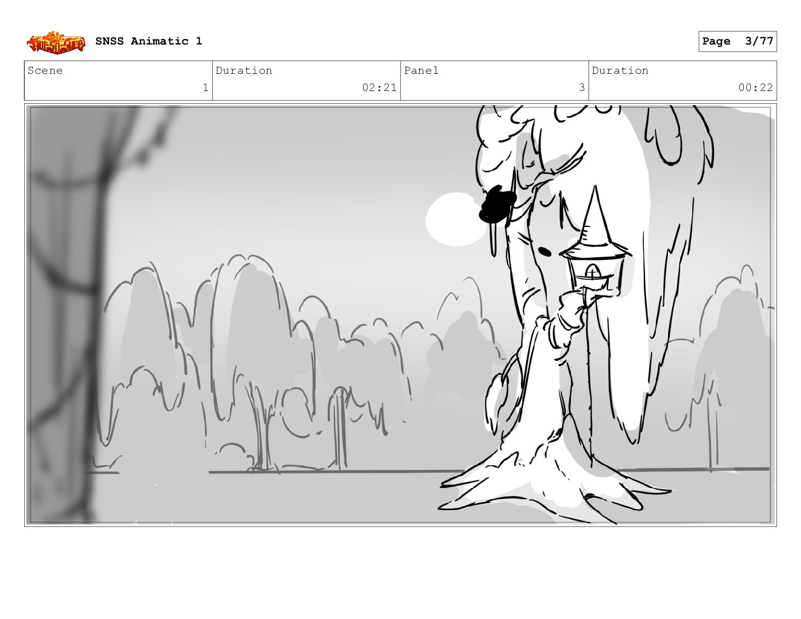 Scene 1 Duration 02:21 Panel 3 Duration 00:22 SNSS Animatic