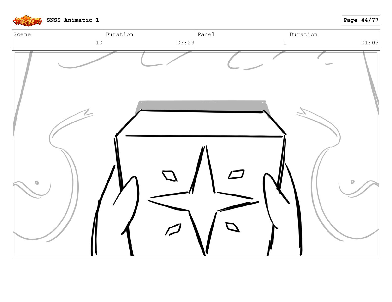 Scene 10 Duration 03:23 Panel 1 Duration 01:03 SNSS Animatic