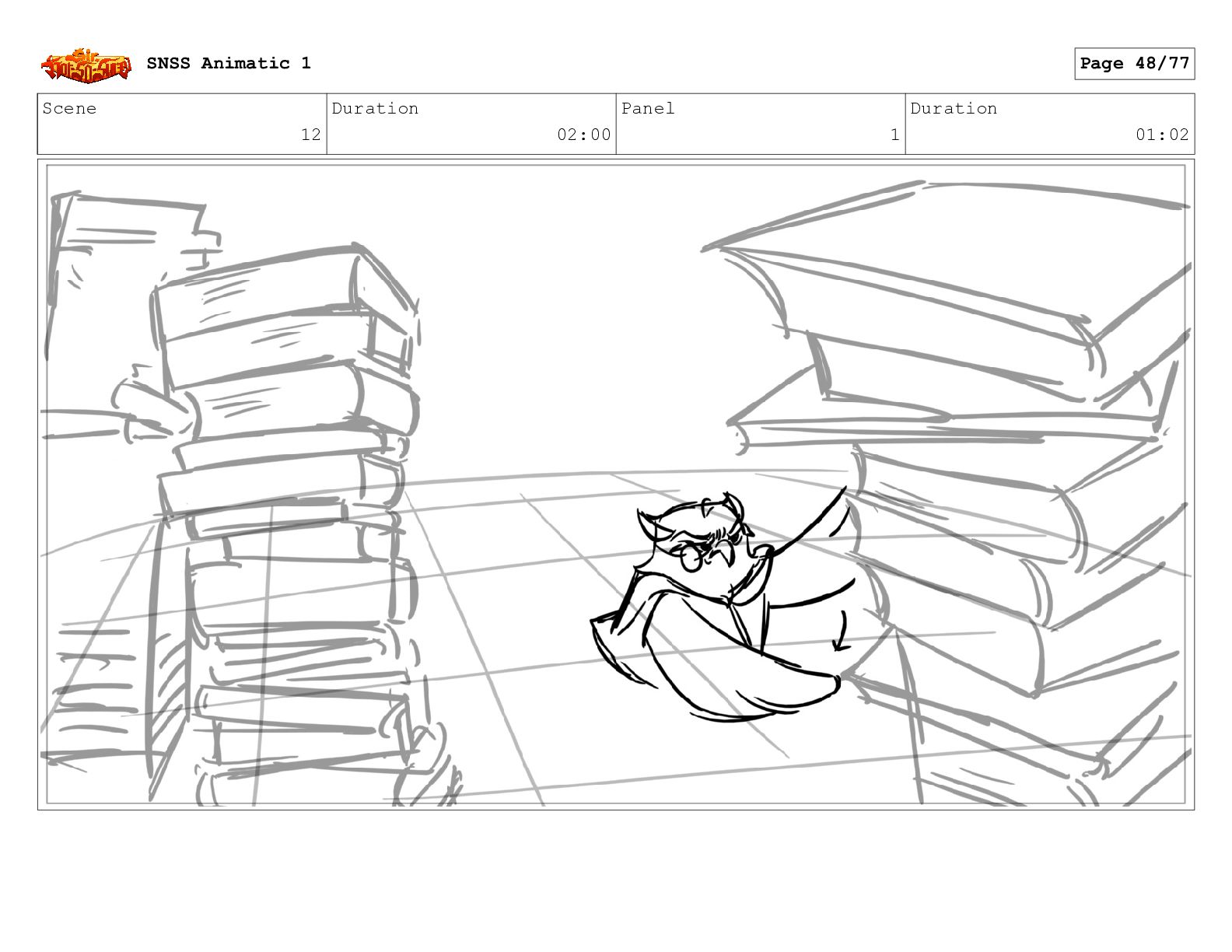 Scene 12 Duration 02:00 Panel 1 Duration 01:02 SNSS Animatic