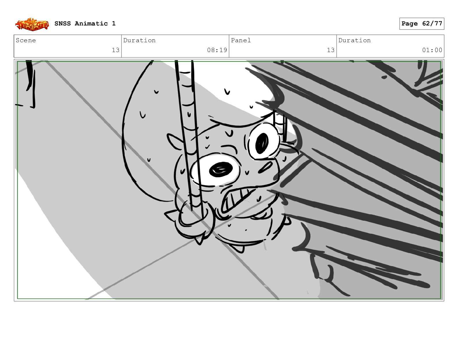 Scene 13 Duration 08:19 Panel 3 Duration 01:00 SNSS Animatic
