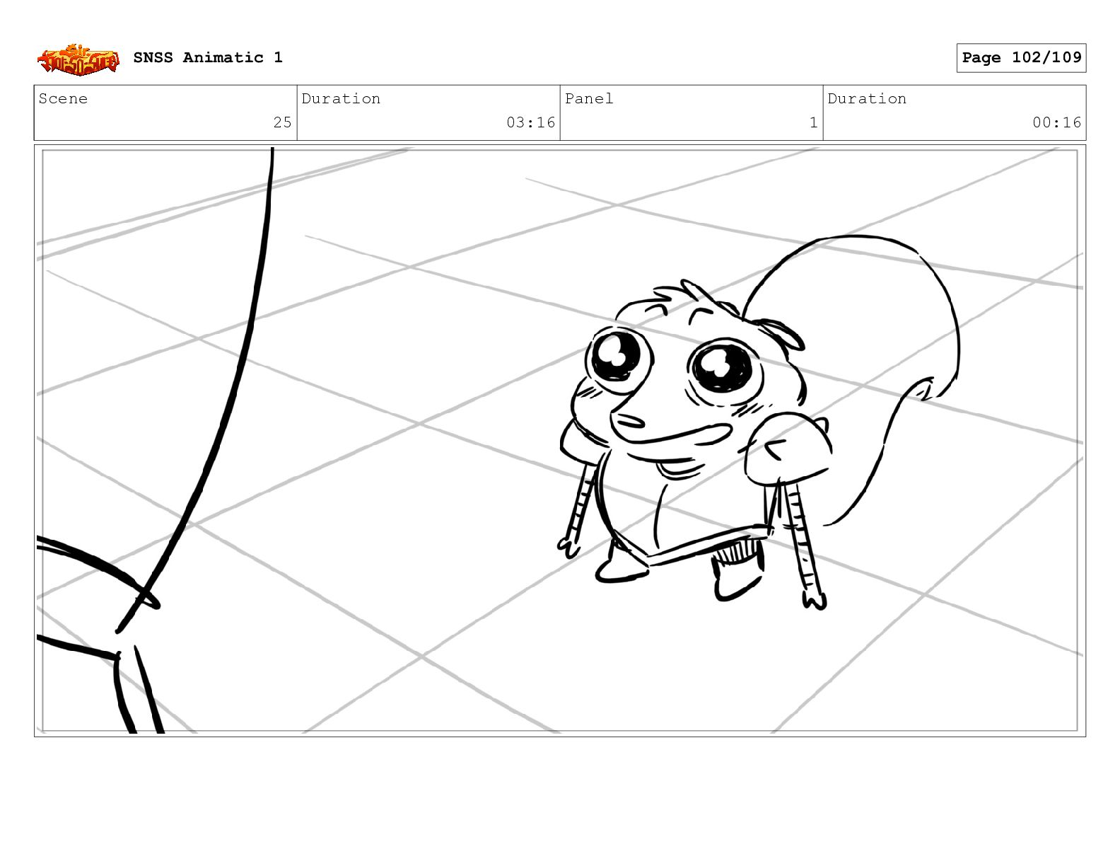 Scene 25 Duration 03:16 Panel 1 Duration 00:16 SNSS Animatic