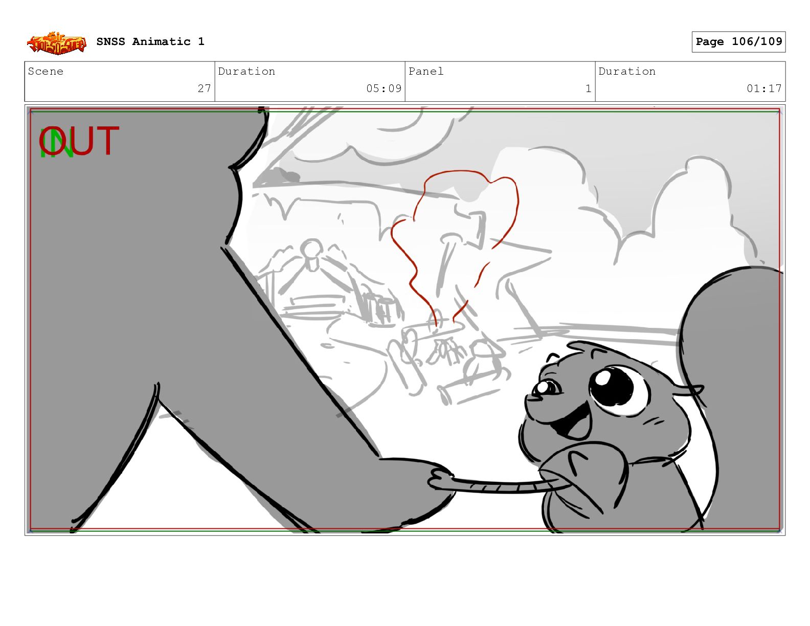Scene 27 Duration 05:09 Panel 1 Duration 01:17 SNSS Animatic