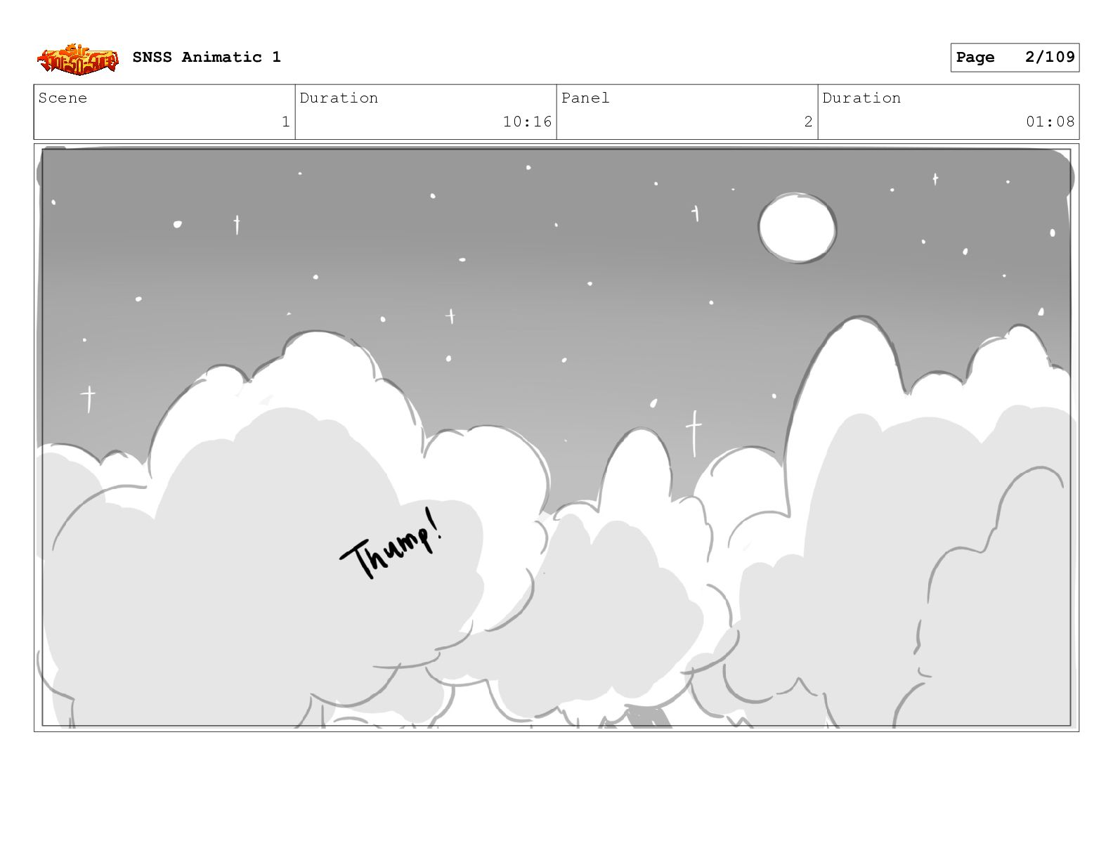 Scene 1 Duration 10:16 Panel 2 Duration 01:08 SNSS Animatic