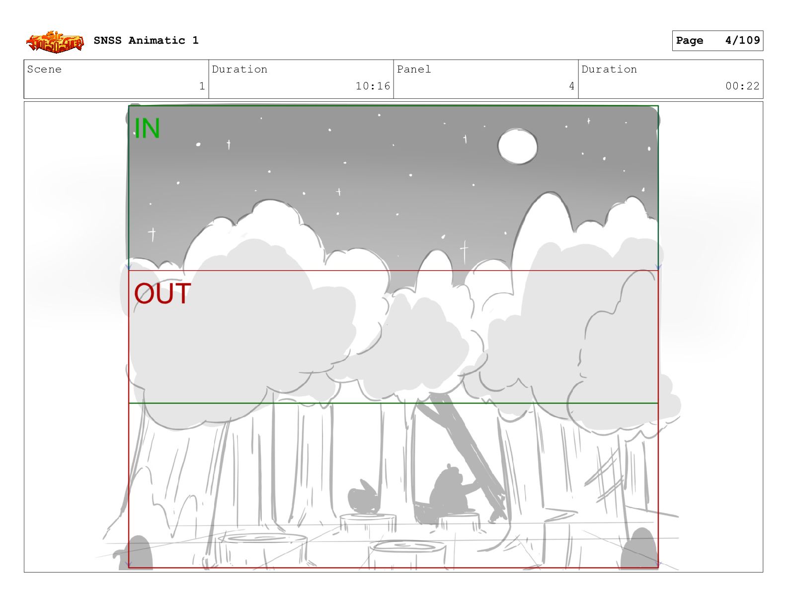 Scene 1 Duration 10:16 Panel 4 Duration 00:22 SNSS Animatic