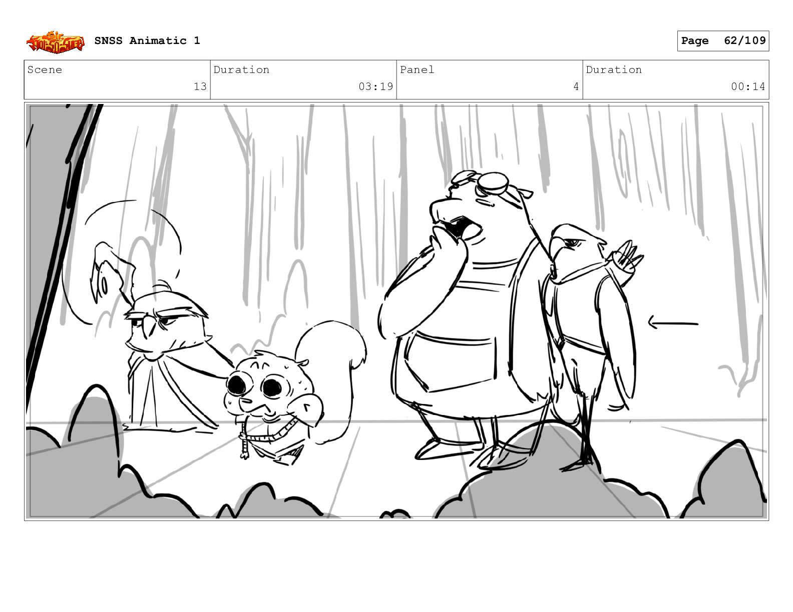 Scene 14 Duration 04:21 Panel 3 Duration 01:02 SNSS Animatic