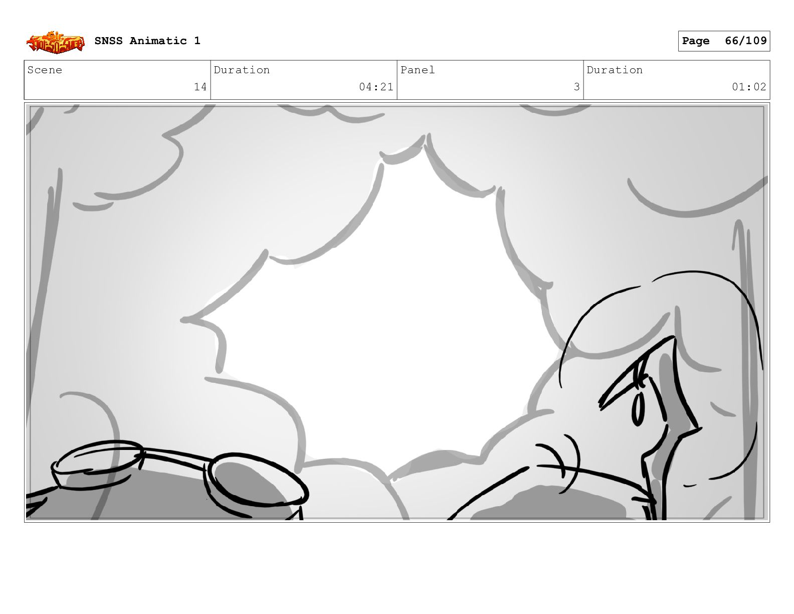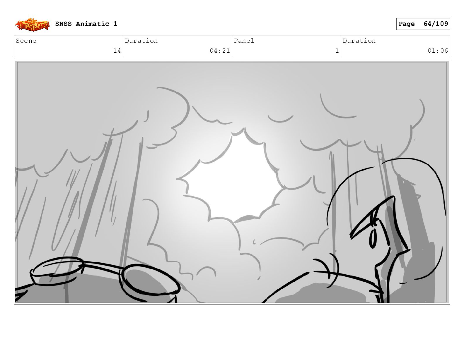 Scene 14 Duration 04:21 Panel 1 Duration 01:06 SNSS Animatic