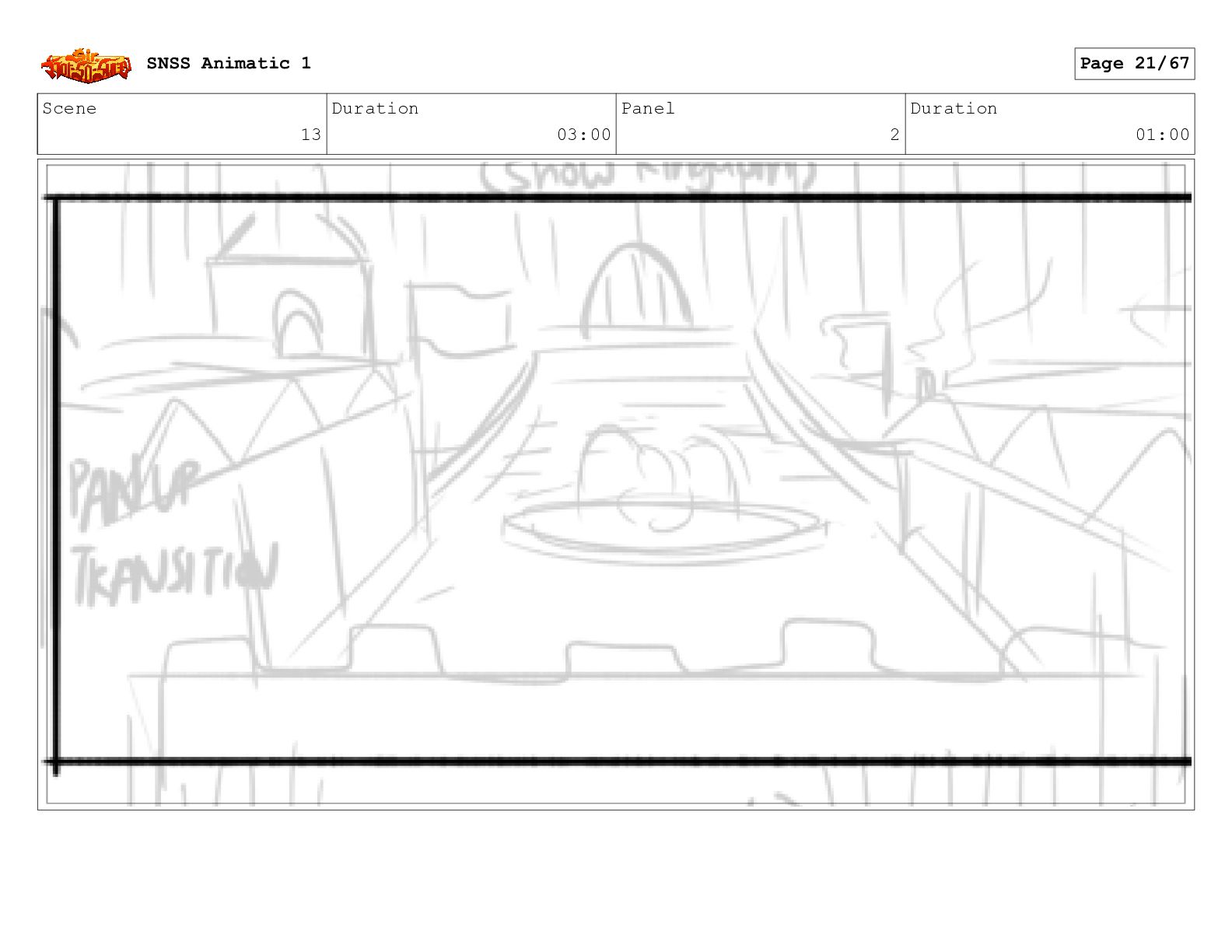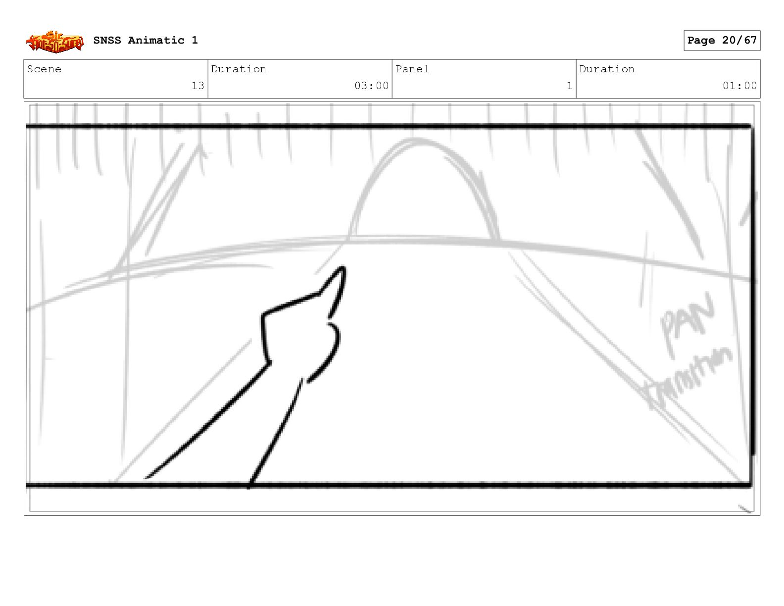 Scene 13 Duration 03:00 Panel 1 Duration 01:00 SNSS Animatic