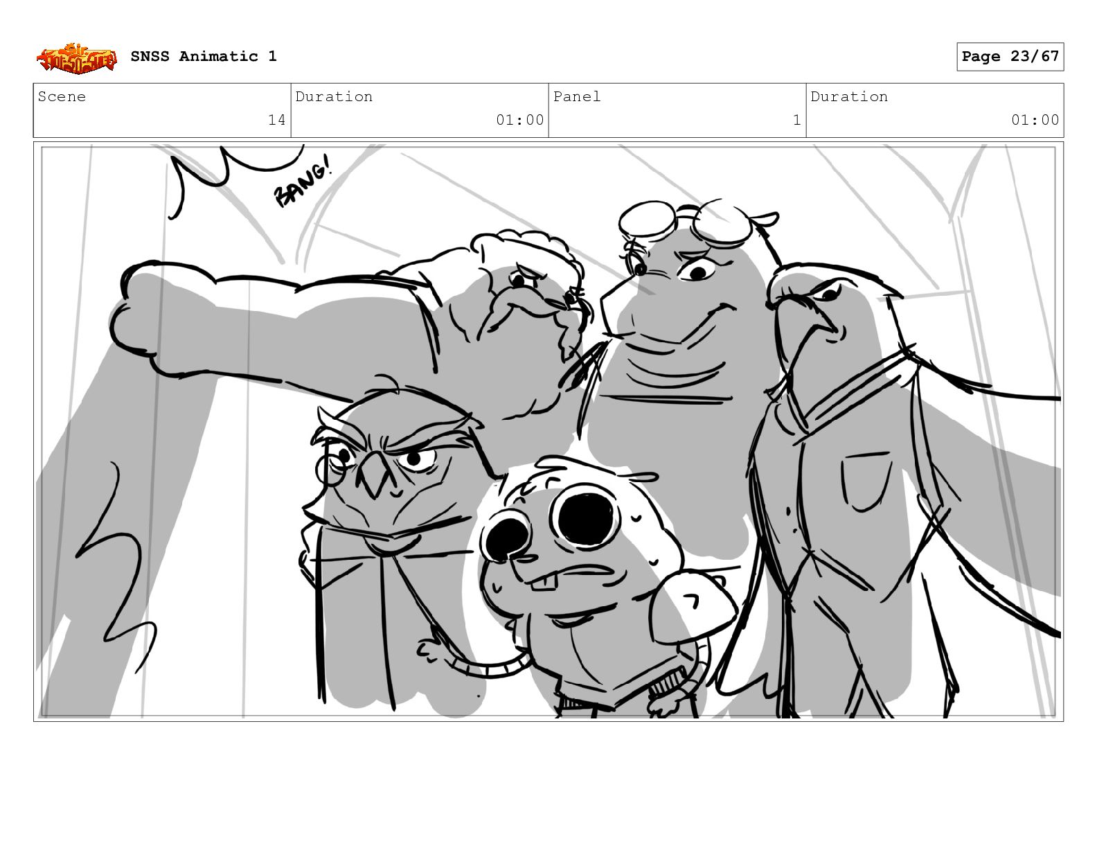 Scene 14 Duration 01:00 Panel 1 Duration 01:00 SNSS Animatic