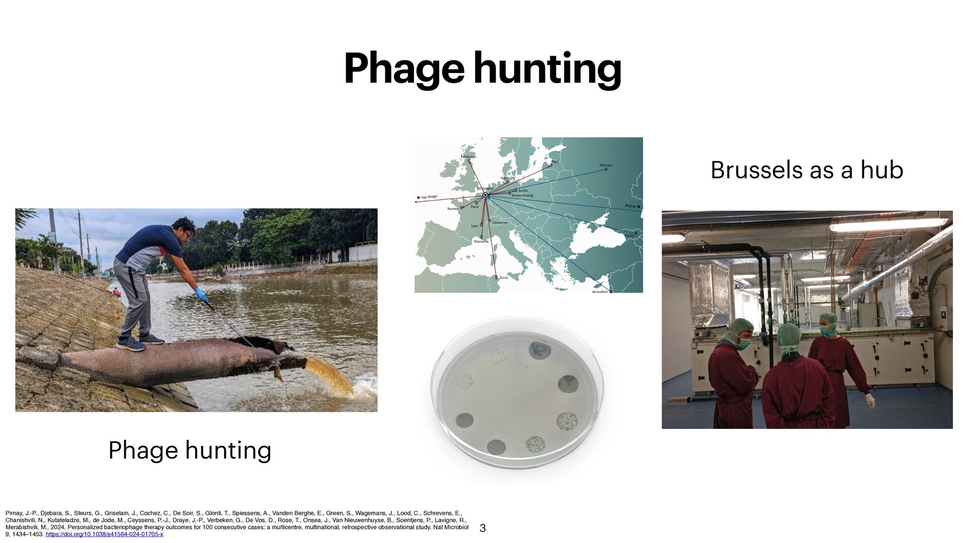 J., Cochez, C., De Soir, S., Glonti, T., Spiessens, A., Vanden Berghe, E., Green, S., Wagemans, J., Lood, C., Schrevens, E., Chanishvili, N., Kutateladze, M., de Jode, M., Ceyssens, P.-J., Draye, J.-P., Verbeken, G., De Vos, D., Rose, T., Onsea, J., Van Nieuwenhuyse, B., Soentjens, P., Lavigne, R., Merabishvili, M., 2024. Personalized bacteriophage therapy outcomes for 100 consecutive cases: a multicentre, multinational, retrospective observational study. Nat Microbiol 9, 1434–1453. https://doi.org/10.1038/s41564-024-01705-x Phage hunting Brussels as a hub