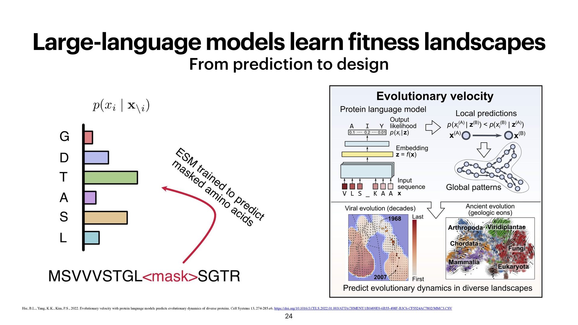 24 Hie, B.L., Yang, K.K., Kim, P.S., 2022. Evolutionary velocity with protein language models predicts evolutionary dynamics of diverse proteins. Cell Systems 13, 274-285.e6. https://doi.org/10.1016/J.CELS.2022.01.003/ATTACHMENT/1B0499E9-6B55-498F-B3C6-CF5524AC7802/MMC3.CSV
