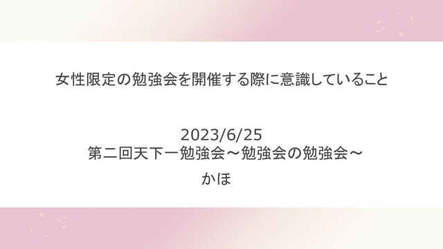 女性限定の勉強会を開催する際に意識していること 2023/6/25 第二回天下一勉強会〜勉強会の勉強会〜 かほ