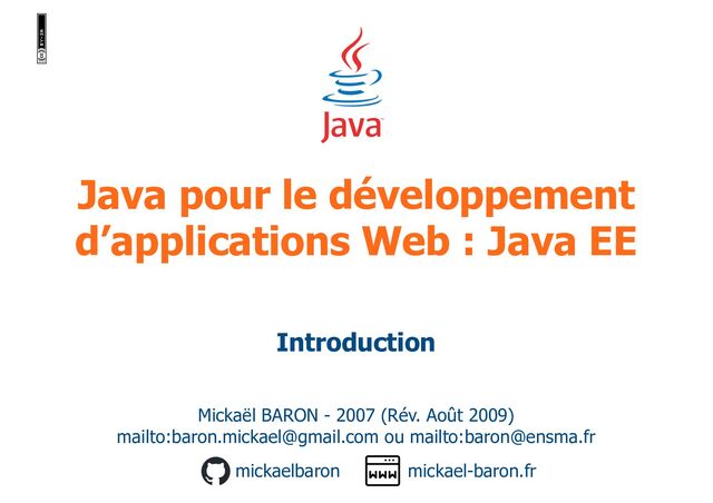 Présentation des différentes architectures pour le développement WEB, des différents types de client (lourd et léger) en insistant, pour les clients légers, sur les technologies existantes côté client et serveur, puis rappel concernant le protocole HTTP, et enfin précisions sur le fait que ce support de cours s'intéresse à Java EE.
