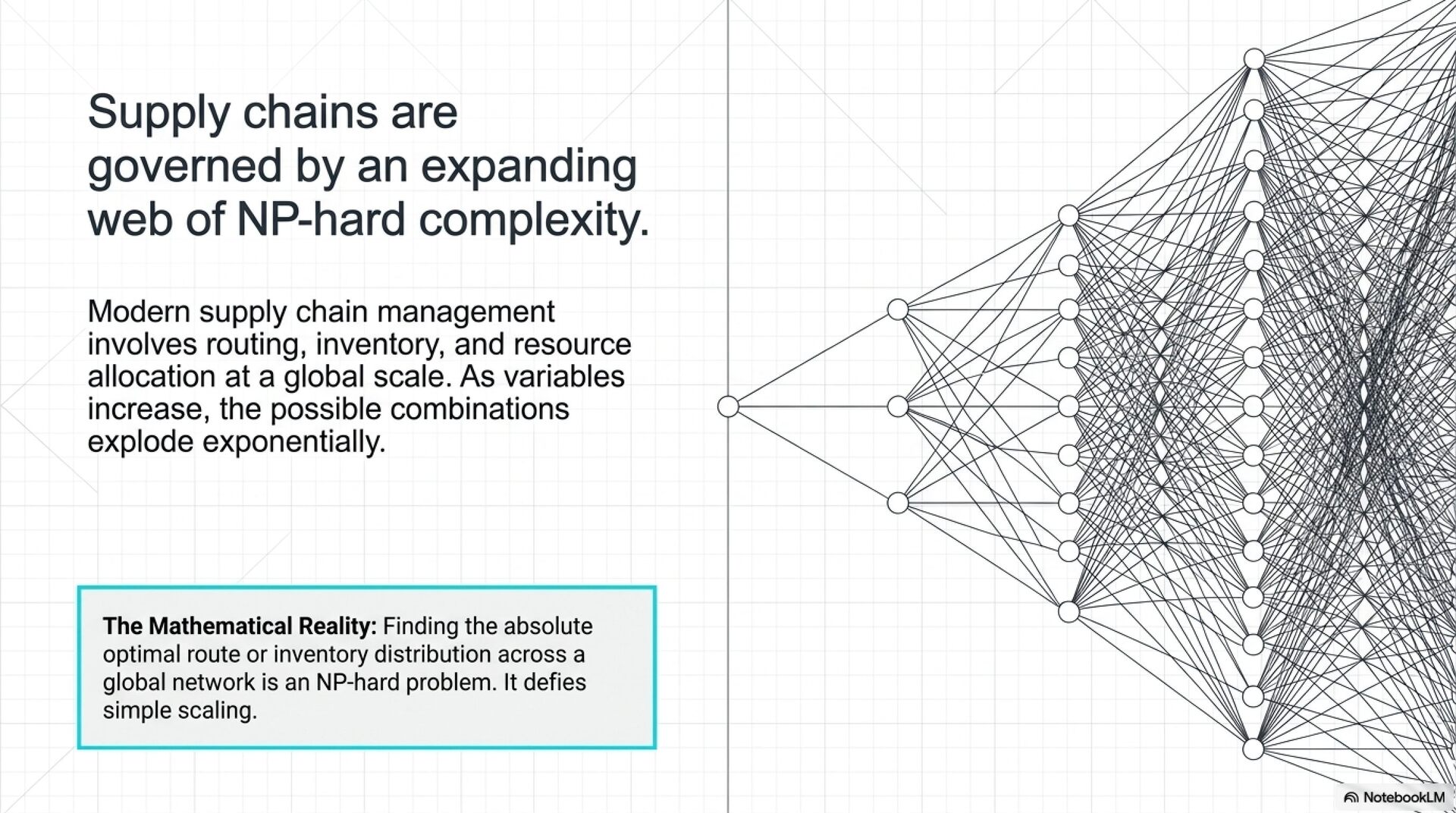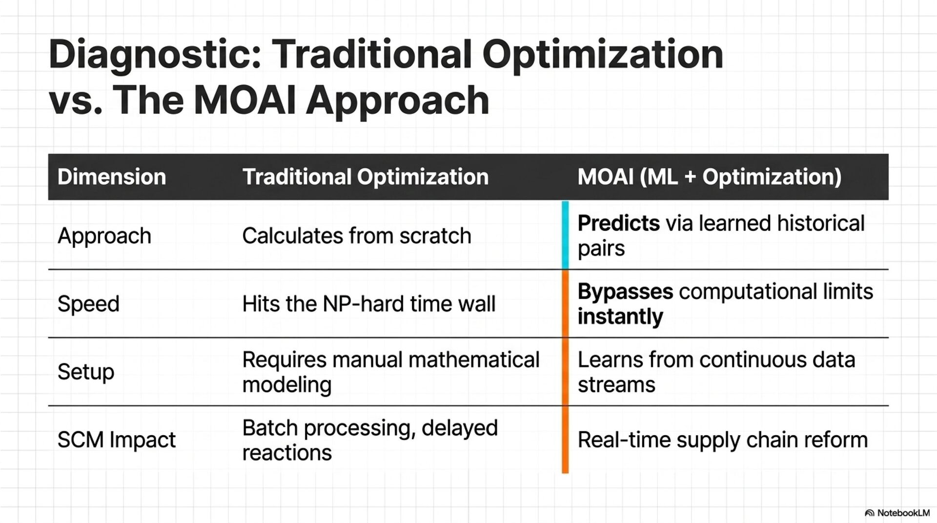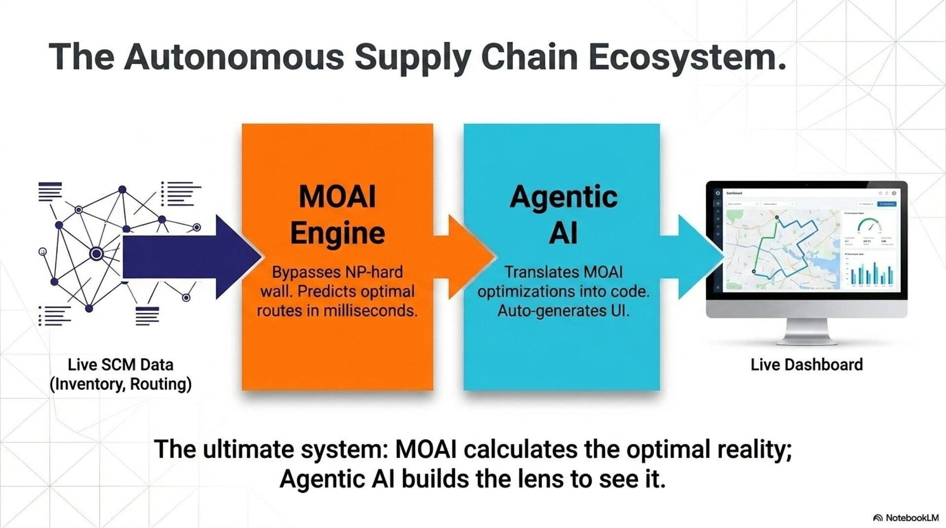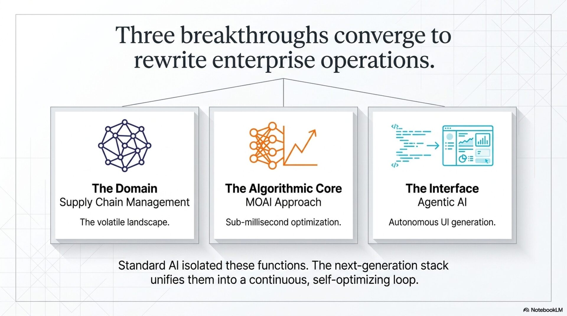 AI技術を活用してサプライチェーン・マネジメント(SCM)やデータ解析を高度化するための調査プロセスを記録したものです。具体的には、機械学習と数理最適化を組み合わせた「MOAIアプローチ」による計算の高速化や、AIによる業務変革の可能性が探られています。また、自律型AI(Agentic AI)を用いて、プログラミングからアプリケーション生成までを自動完結させる手法についても触れられています。