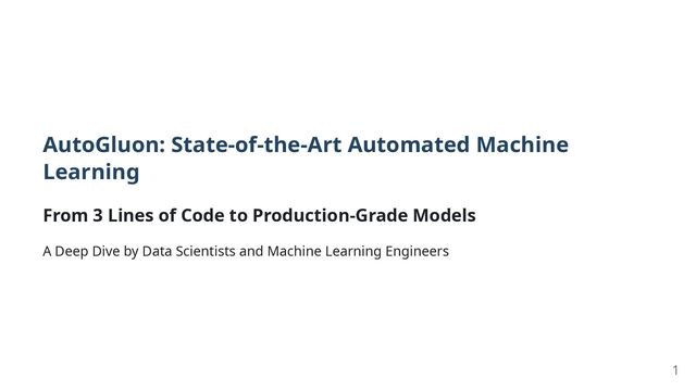 Code" AutoGluon is an open-source library that automates machine learning tasks, enabling users to train and deploy high-accuracy models with minimal code. Its philosophy is distilled into its iconic "3 lines of code": from autogluon.tabular import TabularPredictor # 1. Initialize predictor and fit on data predictor = TabularPredictor(label="class").fit("train.csv") # 2. Predict on test data predictions = predictor.predict("test.csv") # 3. (Optional) Evaluate model performance predictor.leaderboard("test.csv") This simplicity represents AutoGluon's core design principle: abstracting away immense complexity into a simple, intuitive API. 3