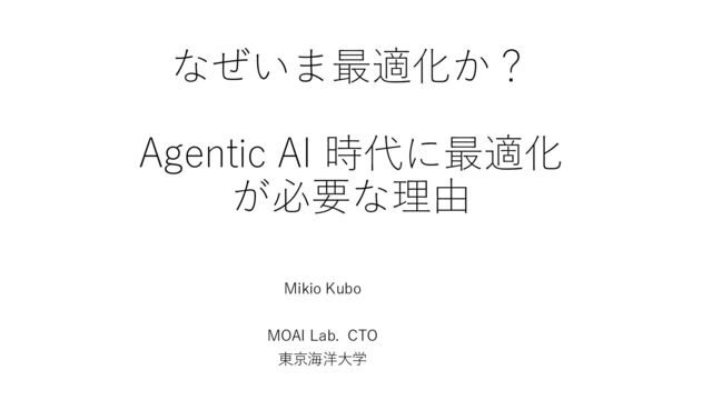 なぜいま最適化か? Agentic AI 時代に最適化 が必要な理由 Mikio Kubo MOAI Lab. CTO