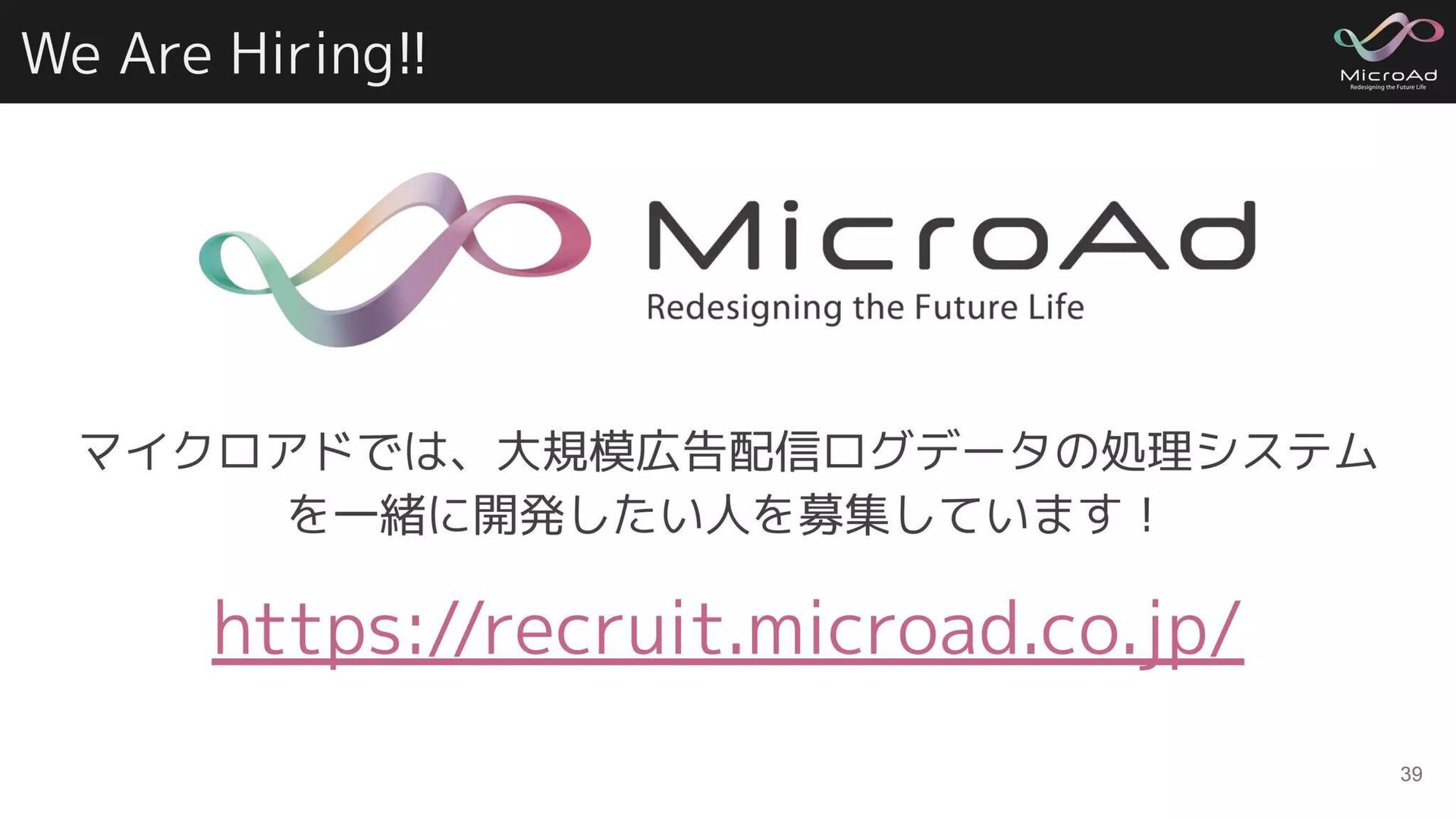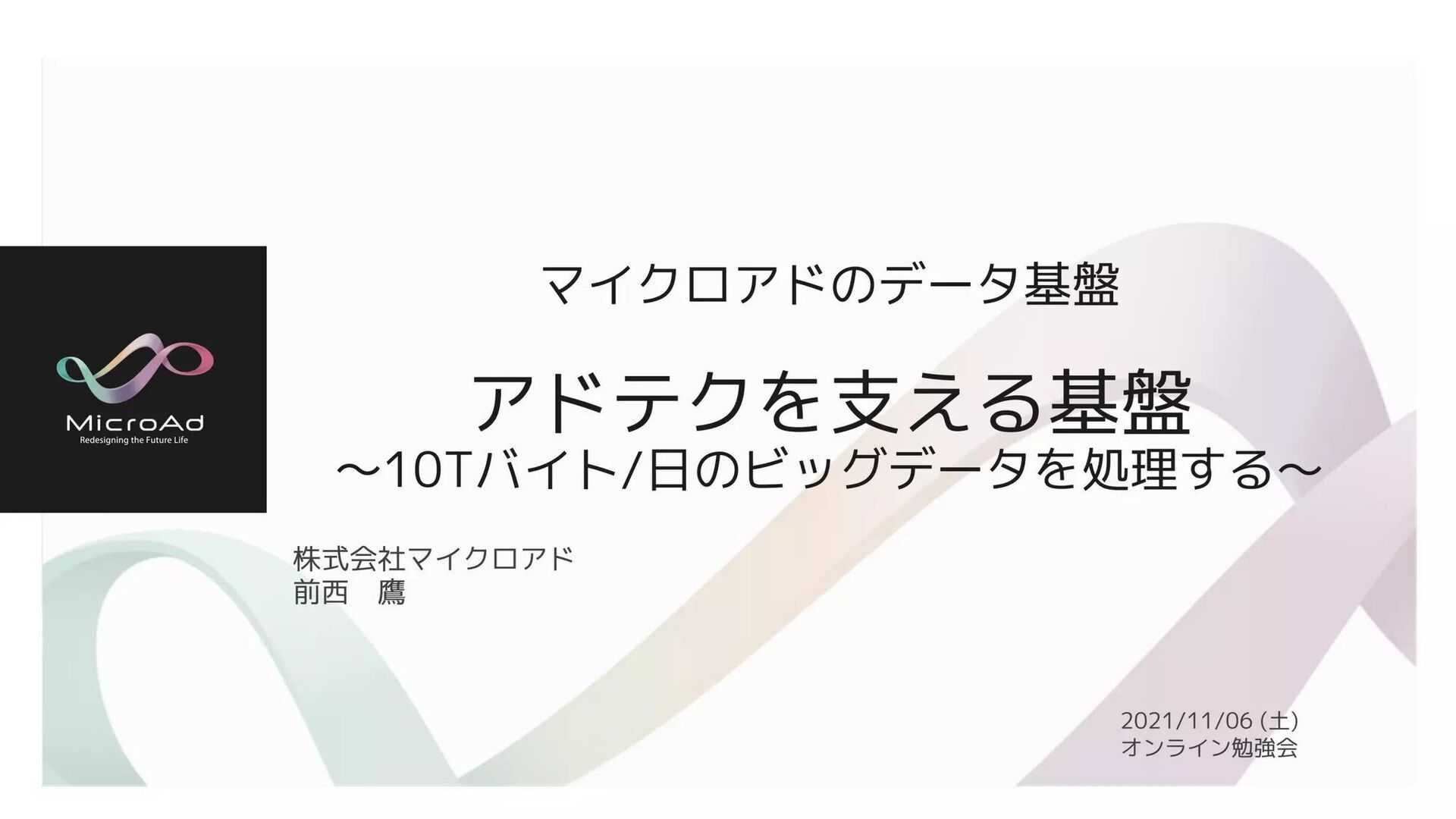 オンライン勉強会「マイクロアドのデータ基盤について アドテクを支える基盤〜10Tバイト/日のビッグデータを処理する〜」 https://microad.connpass.com/event/229092/